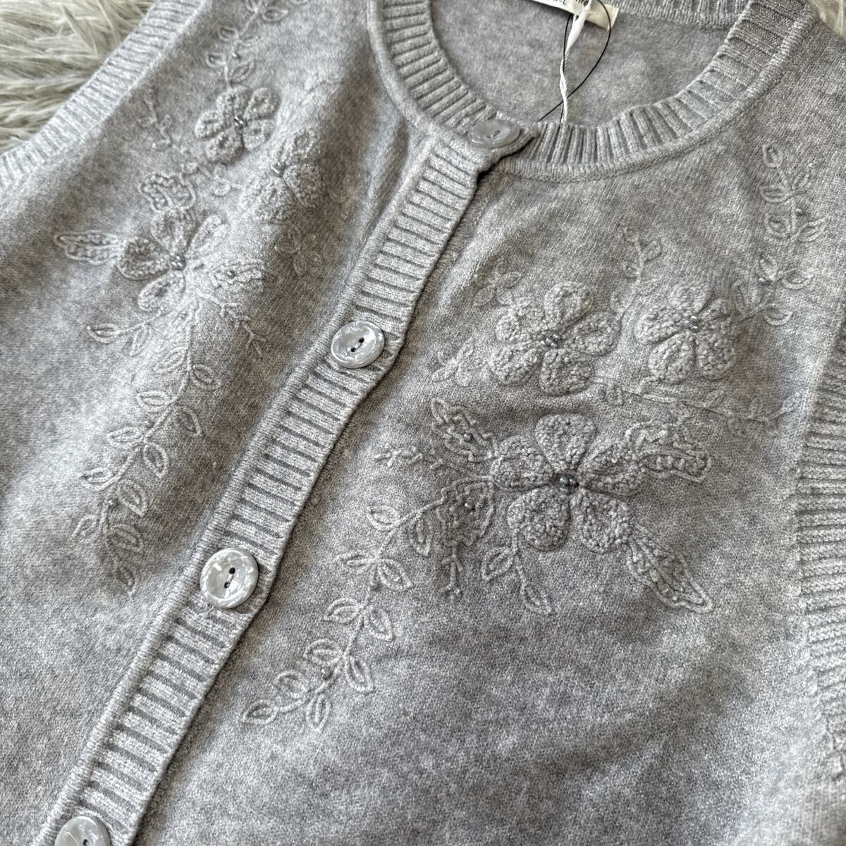 背中内側ベロアもちもちふわふわお花モチーフフロントボタンニットベストグレーです。 未使用タグ付きです。 自宅保存なので細かい事を気になさる方は ご入札を避けて下さいね♪ サイズはM-Lサイズです。 平置きで身幅49センチ 着丈61センチ 素人なので多少の差はご了承ください。 品質はレーヨン50% ポリエステル30% ナイロン20% 裏地 ポリエステル100%です。 実際のお色と画像は光の具合により 多少異なる場合があります。 | |||