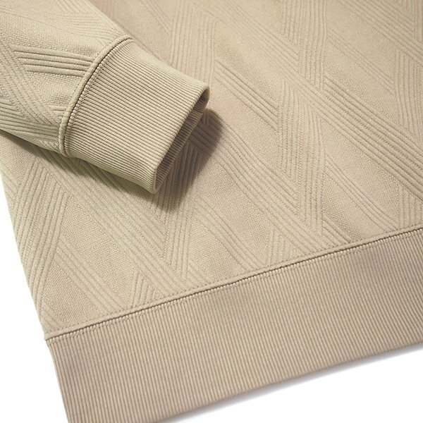 薄いスウェット地でカットソーのような感覚で着用いただける、軽いタッチが魅力のトップス。 柔らかく伸縮性のある素材は、1枚着からインナーとしても使いやすいです。 リンクス柄をジャカード編みで表現し、無地見えしますが立体的でコーデのアクセントになるデザインです。 リラックス感のあるシルエットで、ストレスフリーな快適な着心地です。 |