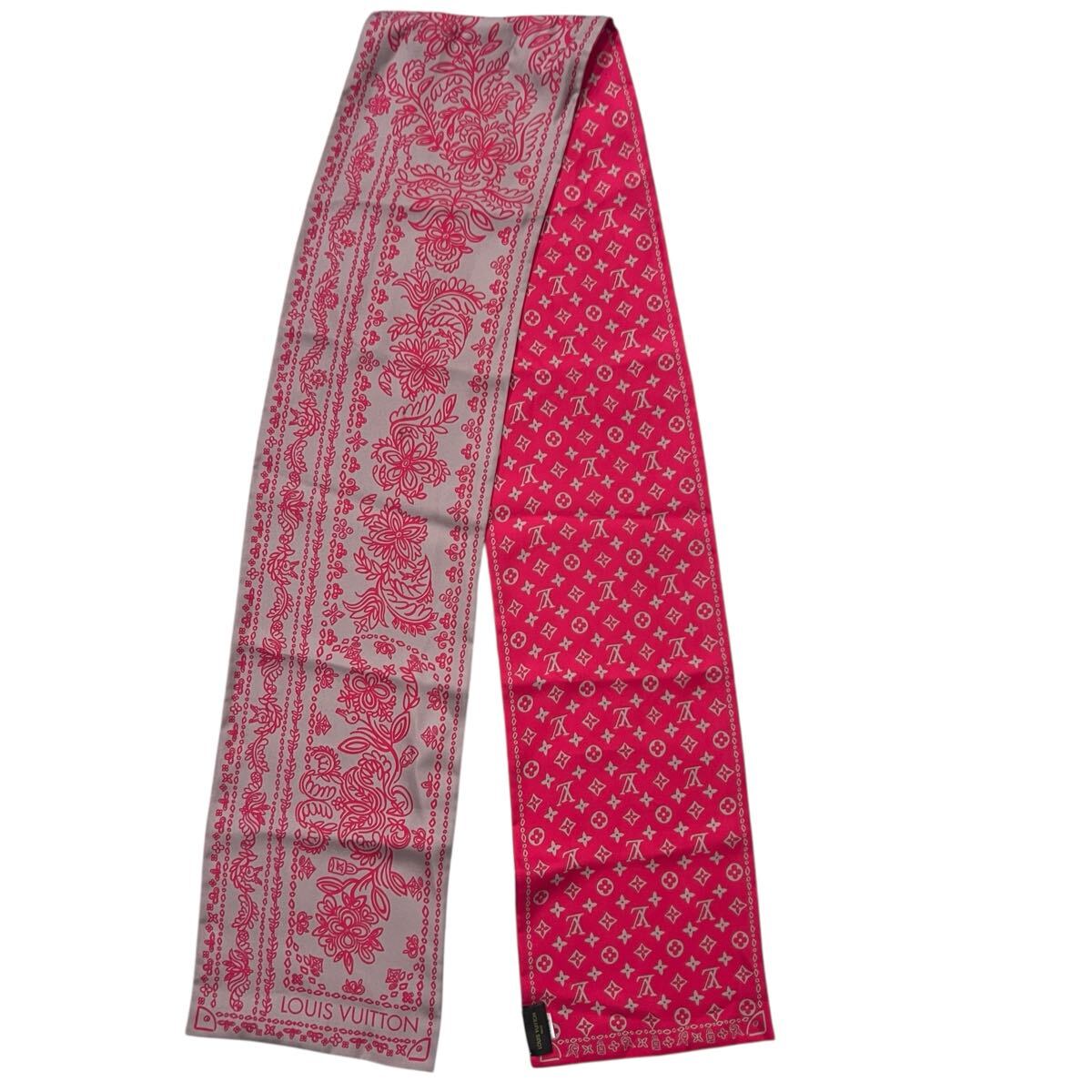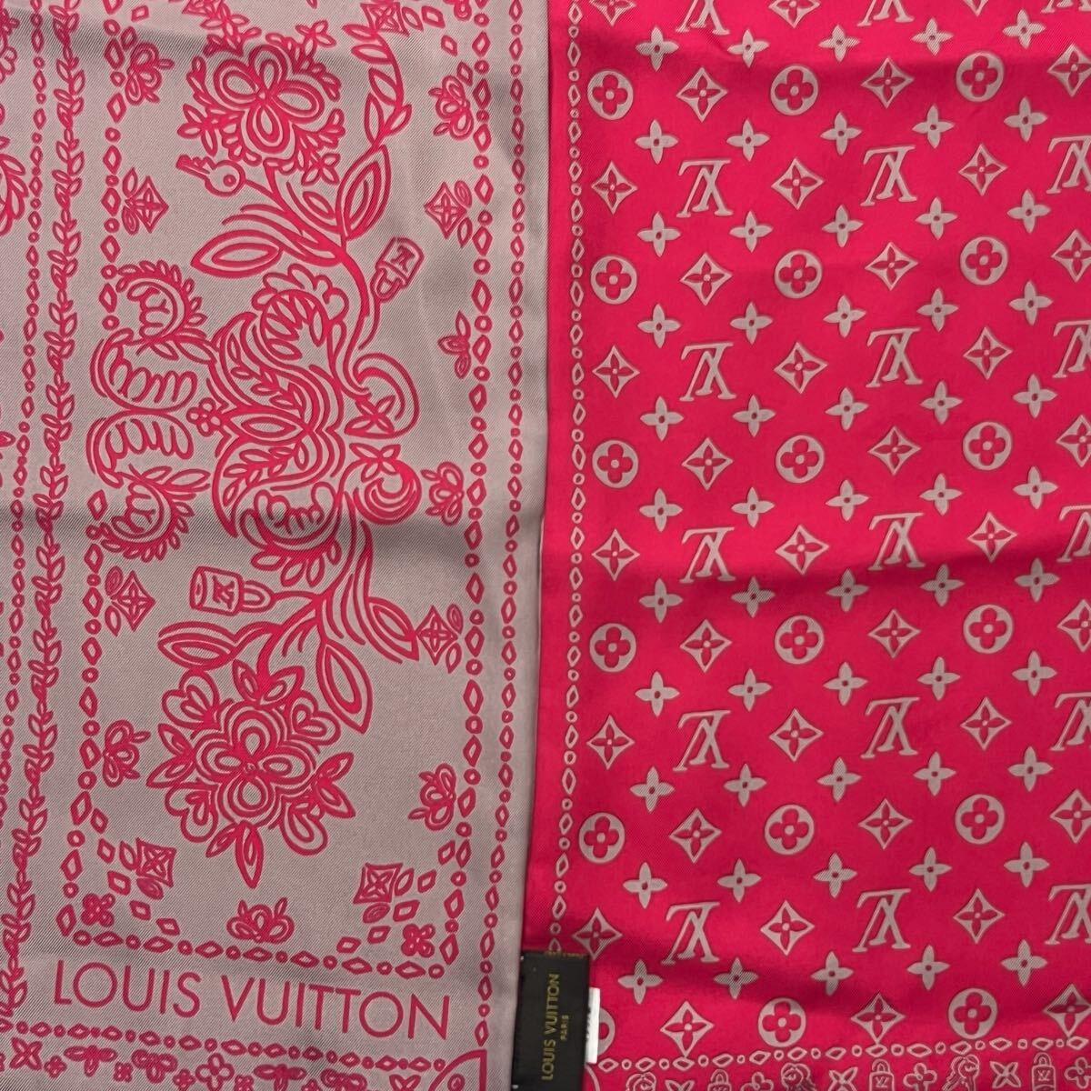 片面にアイコニックなモノグラムパターンが、もう片面には花柄パターンがデザインされた両面で異なる表情を楽しめるストールになります。シルクの肌触りが心地良い品のある1枚です。