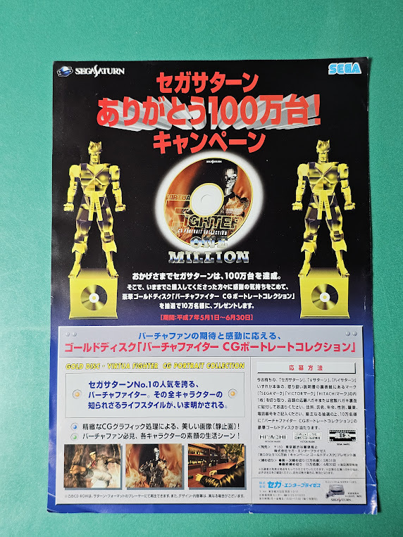 チラシ セガサターン ありがとう100万台!キャンペーン SEGA SATURN セガ SEGA フライヤー 販促 当時物 非売品