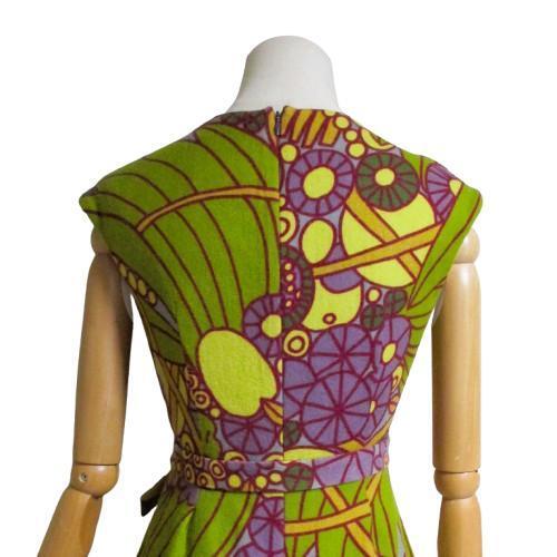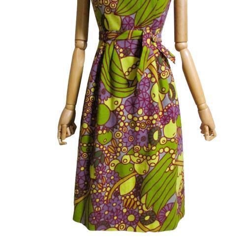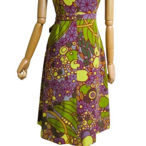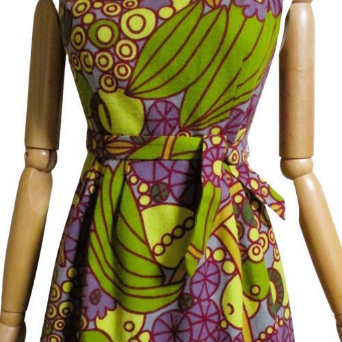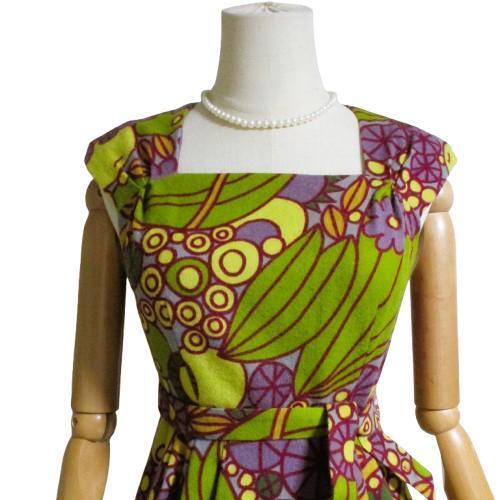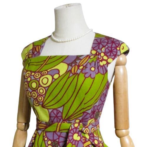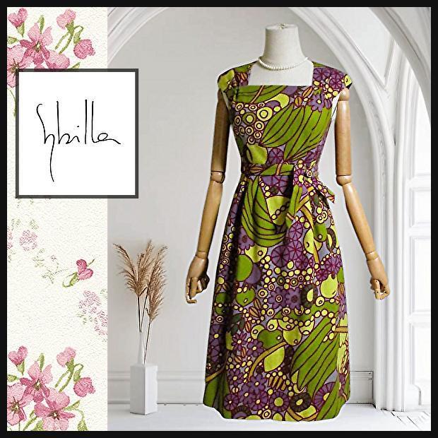 シビラ Sybillaのパープルとグリーンの個性的な柄のワンピース