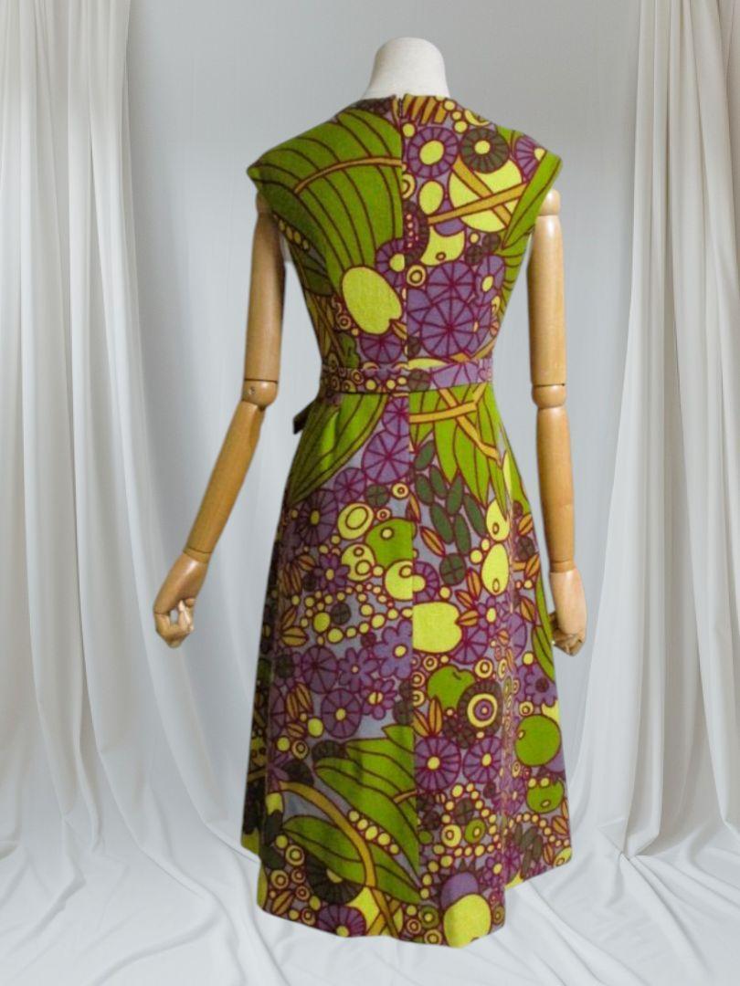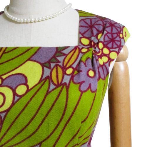 【シビラ/Sybilla】ワンピース 総柄 個性的 毛混 M ジャンパースカート パープル グリーン美シルエットお食事会お呼ばれ 匿名発送