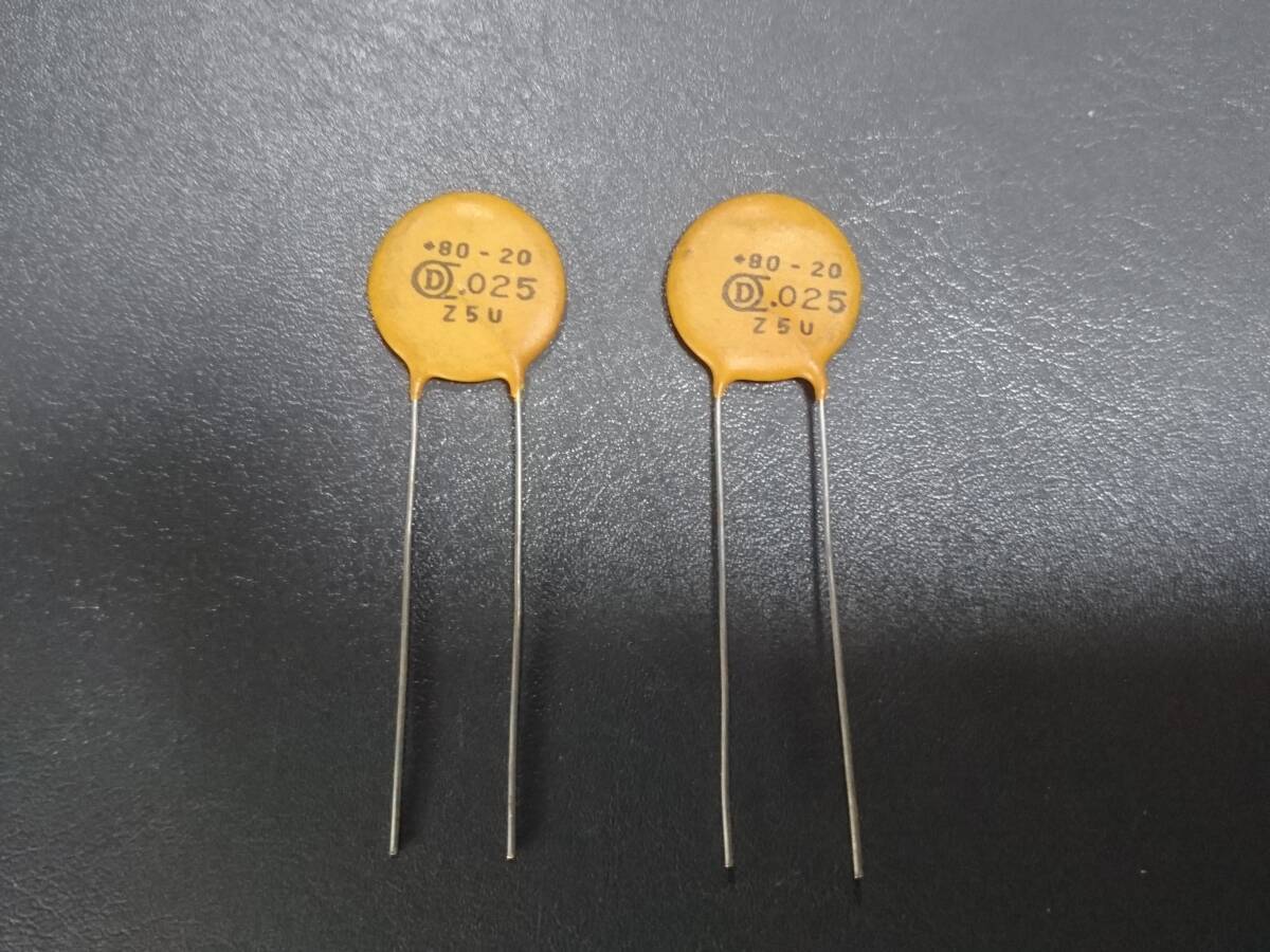ビンテージ ダイレクトロン セラミックコンデンサー  サークルD  0.025μF  耐圧不明 の未使用品 2個セットです。