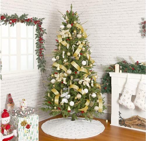 刺繍の細工:クリスマスツリーのスカートに銀色のスパンコールの雪花柄の刺繍を添えて、とても豪華に見えます。92CMの直径のツリースカートは、ほとんどのサイズのクリスマスツリーに適しています 。