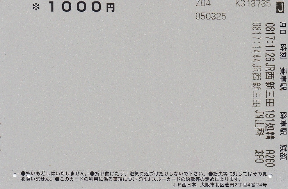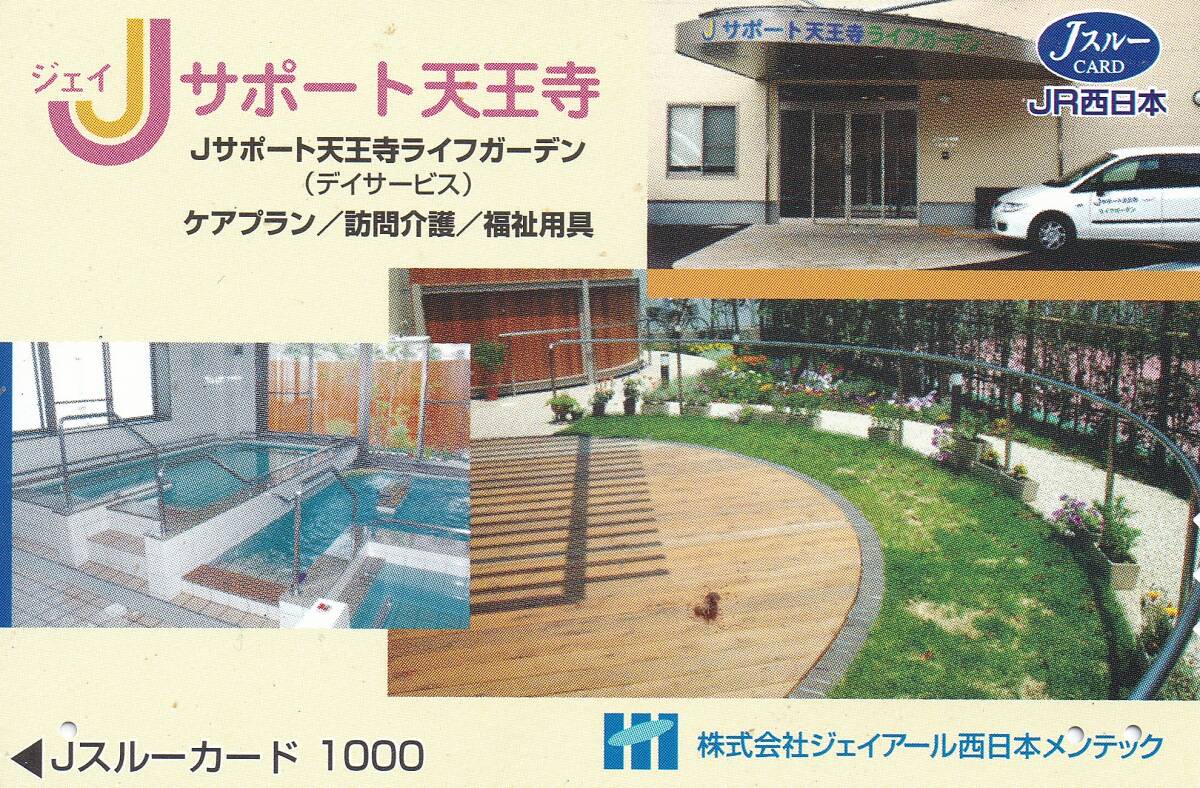 使用済フリーJスルーカード JR西日本 Jサポート天王寺 株式会社ジェイアール西日本テクノス 1000円券 説明文参照