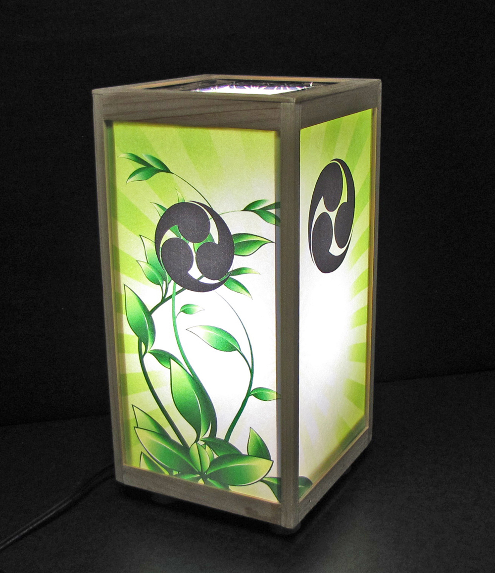 家紋の止まり木=「左三つ巴」/至福の灯火・心温まるひと時/LED昼白色・桧枠造り・FM加工・軽量/