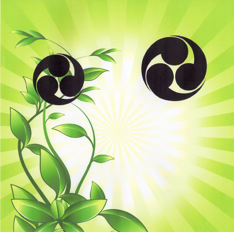 ・家紋の止まり木/行雲流水=「左三つ巴