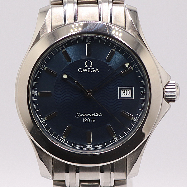 デッドストック級 稼働 良品 オメガ シーマスター120 58362173 QZ ブルー文字盤 メンズ腕時計 7718700 9OKT KMR ABC 16671