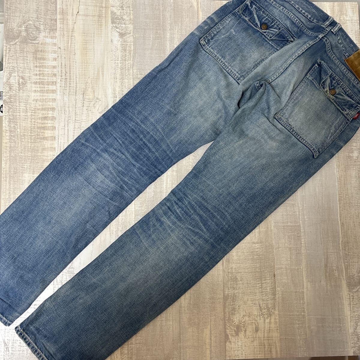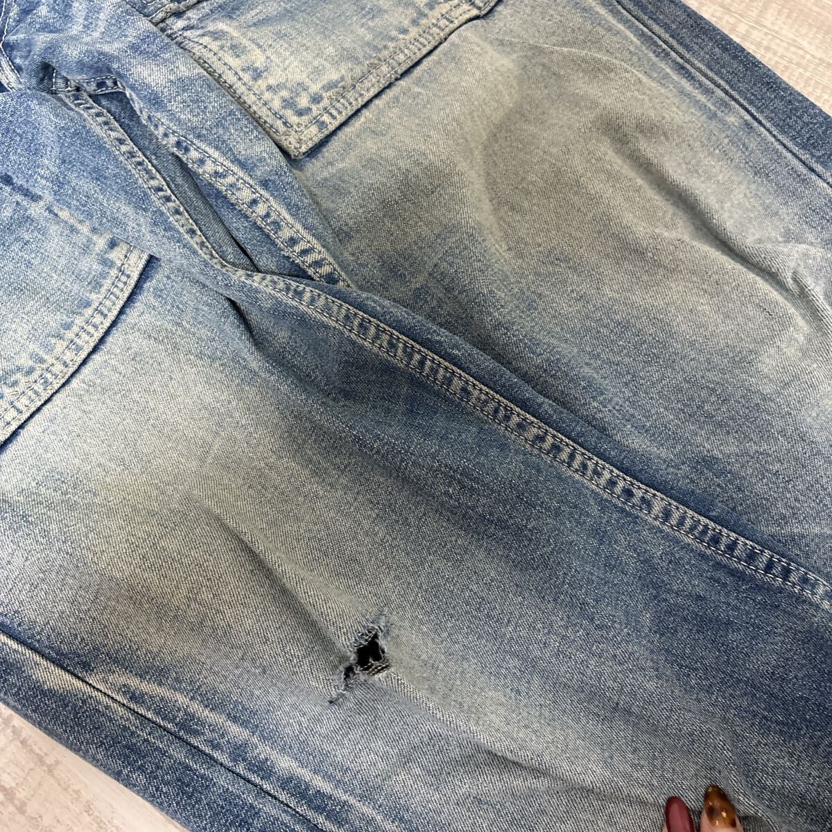 全体的に施された、秀逸なヴィンテージ加工がバッチリ決まったデニムになります。
