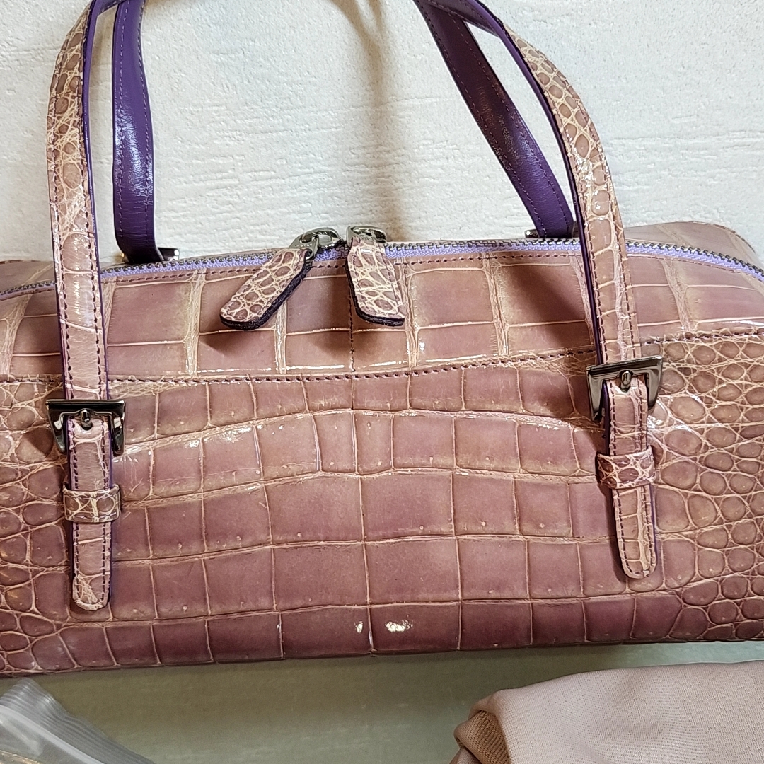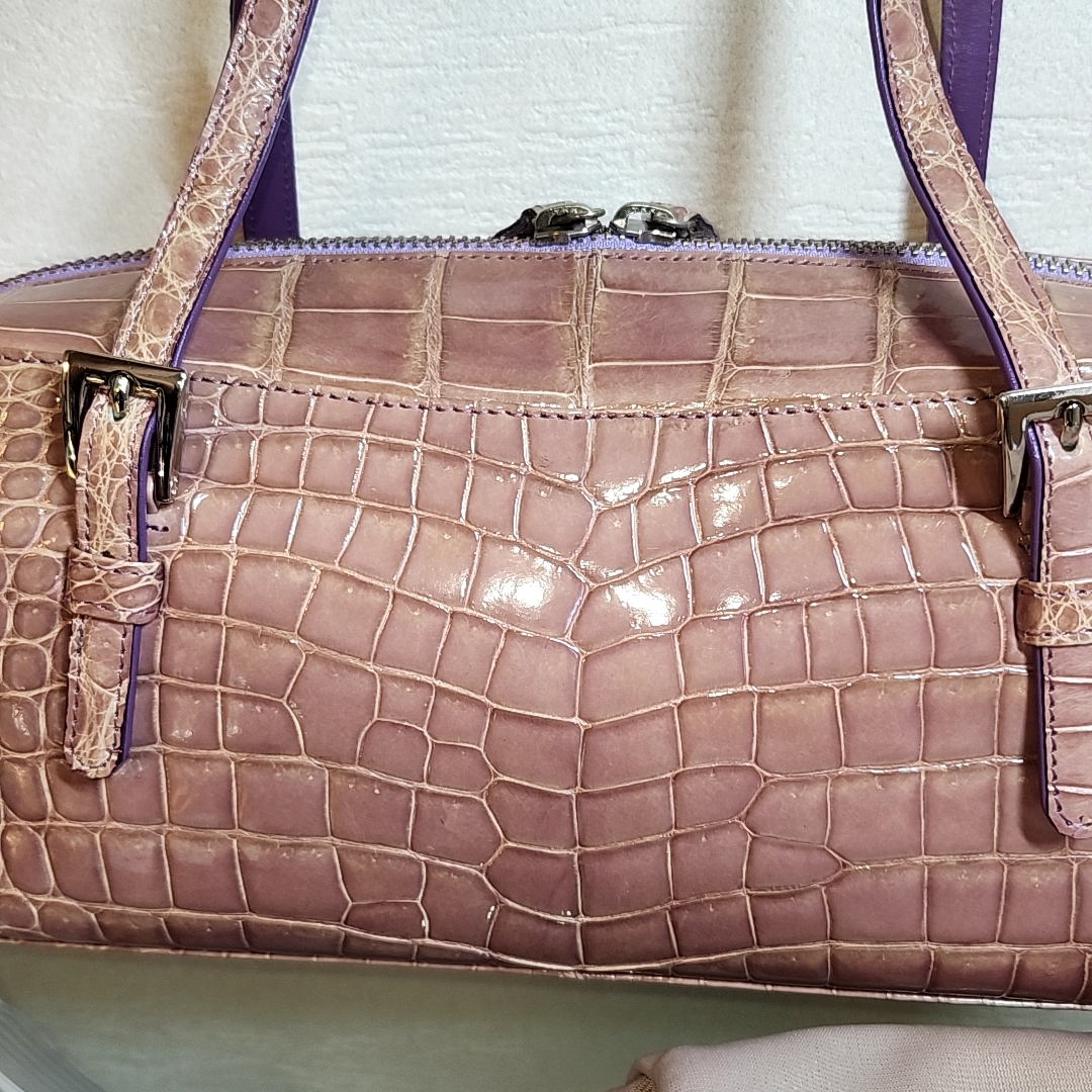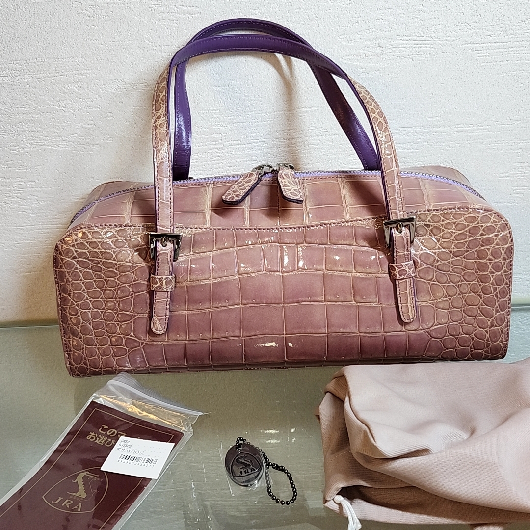 クロコダイル ハンドバッグ 薄紫 ピンク ライラック JRA認定