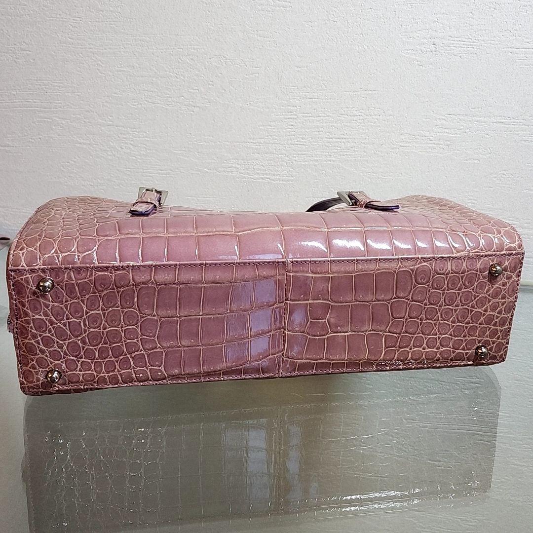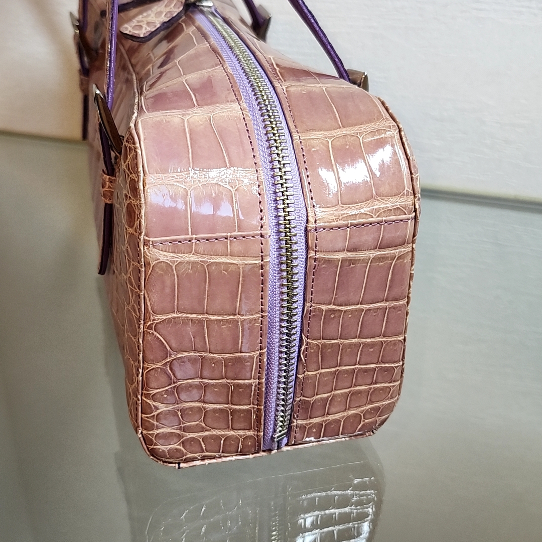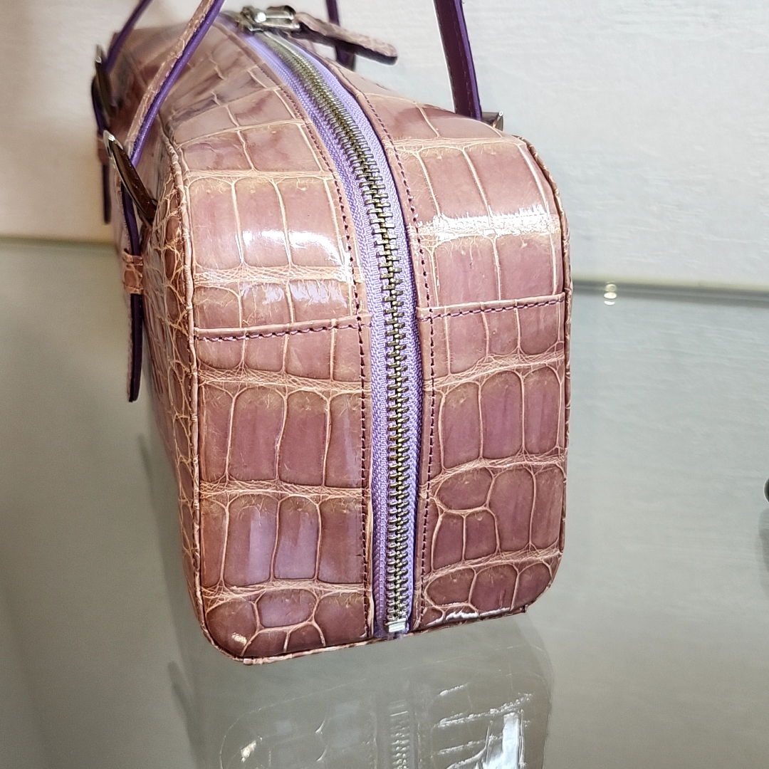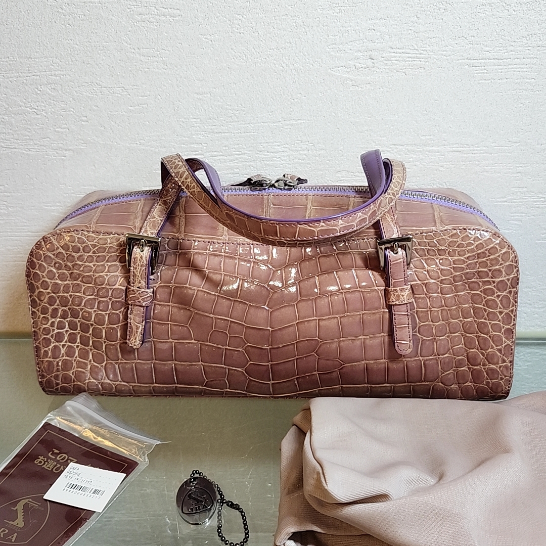 クロコダイル ハンドバッグ 薄紫 ピンク ライラック JRA認定