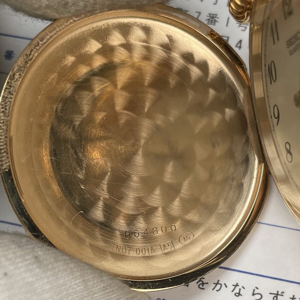 ビンテージ 精工舎 SEIKO セイコー 贈 内閣総理大臣 懐中時計 ゴールドカラー 7N07-001A 恩賜 輪島塗 箱・ギャラ・説・純正鎖付き 美品