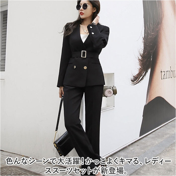 | 商品説明 | ・・色んなシーンで大活躍!かっこよくキマる、レディーススーツセットが新登場。 ・【スタイリッシュなセットアップ】 ・ジャケットとパンツの2点セット。お手持ちのシャツなどをプラスするだけで、おしゃれなスーツスタイルが完成。 ・【存在感のあるダブルジャケット】 ・フロントボタンが2列になったデザイン。ソフトな肩パッド入りで、美しいカタチをキープ&スッと羽織れる裏地付き。 ・【すっきり履けるロングパンツ】 ・フロントファスナー&スライド金具で着脱でき、トップスをインした時もウエストまわりがすっきり。左右にポケット付き。 ・【ベルトでちょこっとアレンジOK】 ・ジャケットのボタンを閉めて付属のベルトをウエストにプラスすれば、一味違ったスタイルに。 ・【体に負担をかけず着心地軽やか】 ・サラッと軽い生地感で、ストレスフリー◎春や秋におすすめ。 |