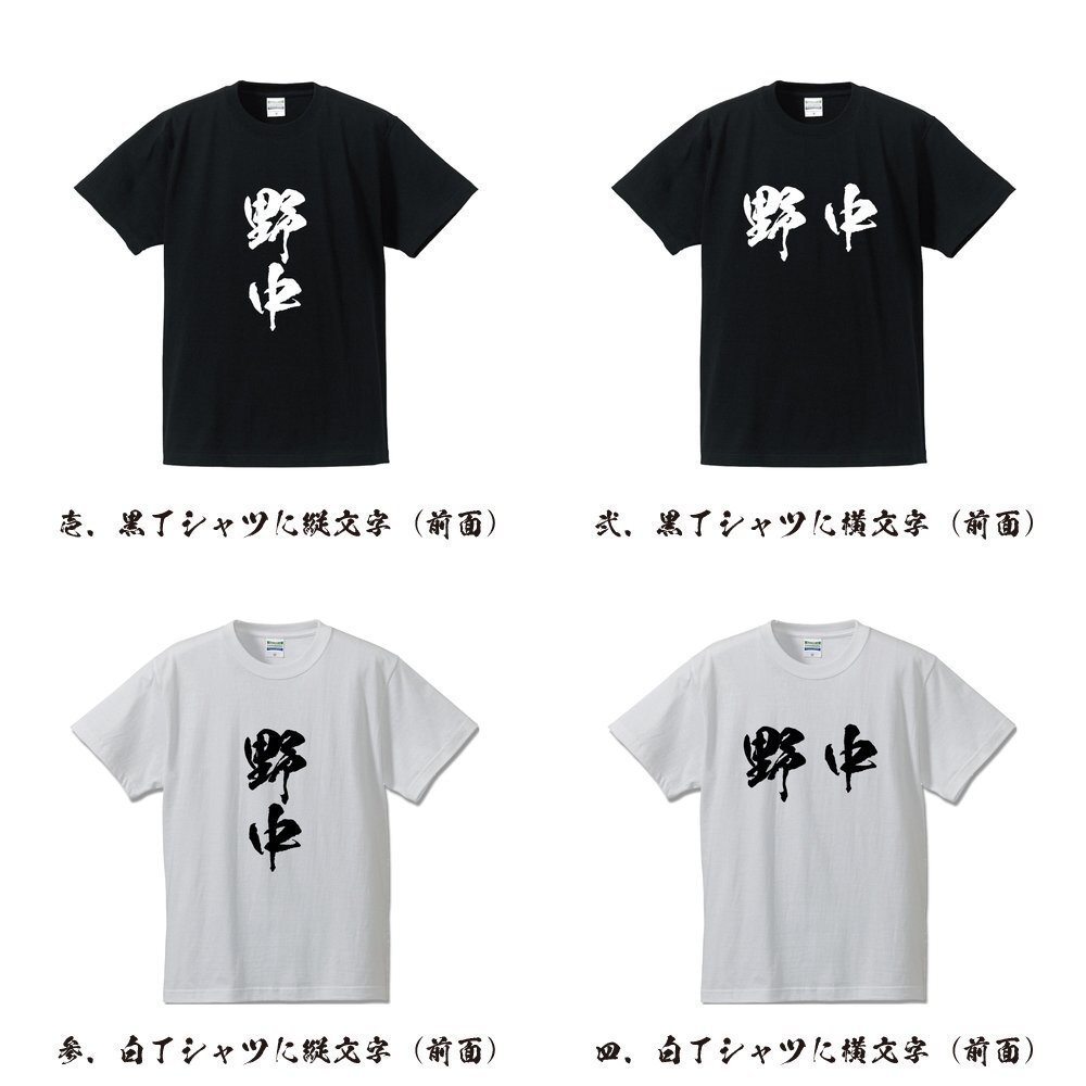 野中 オリジナル Tシャツ 書道家が書く プリント Tシャツ S M L XL XXL 120 130 140 150 G-S G-M G-L 【 名字 】