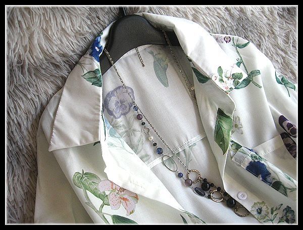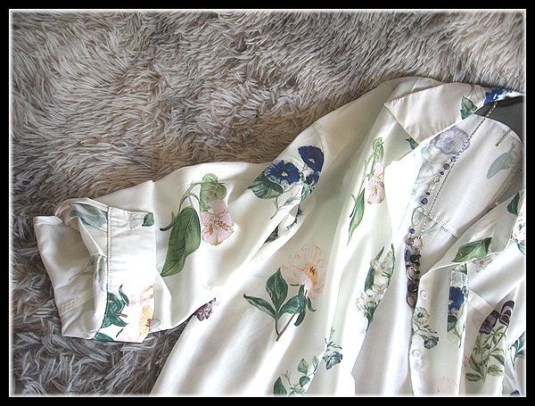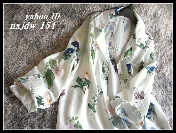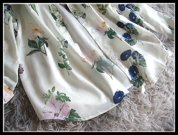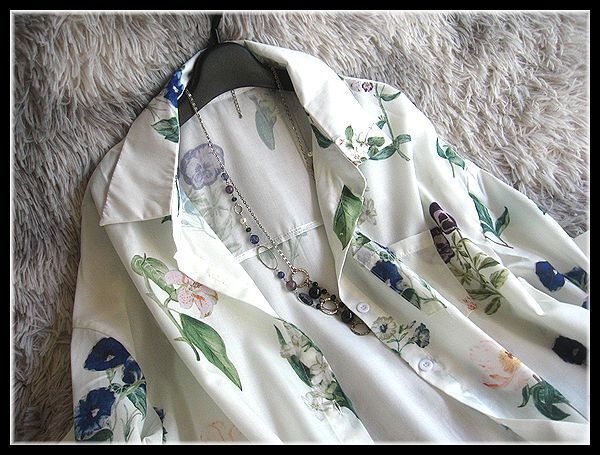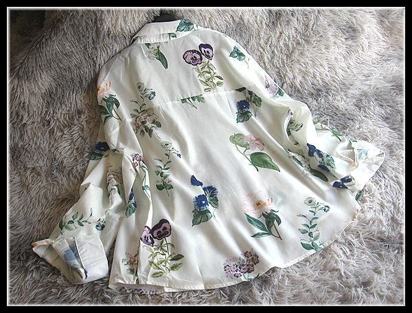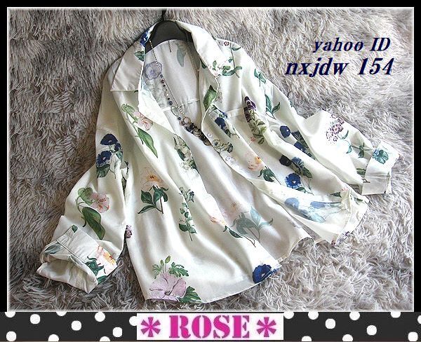 ◆Rose◇ゆったりワンサイズ・優しいボタニカル柄♪印象フラワーがフェミニンなシャツチュニック/オフホワイト
