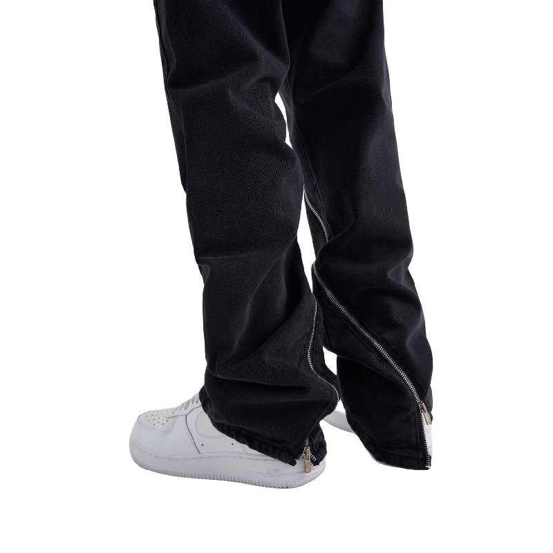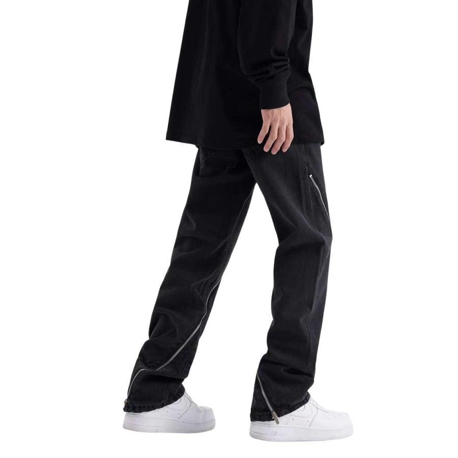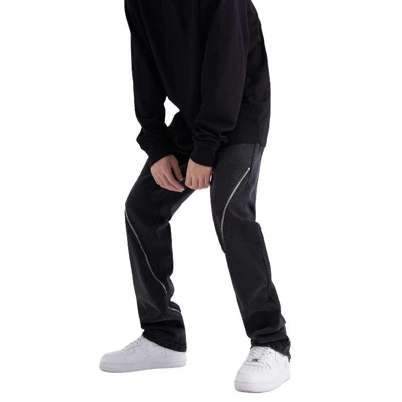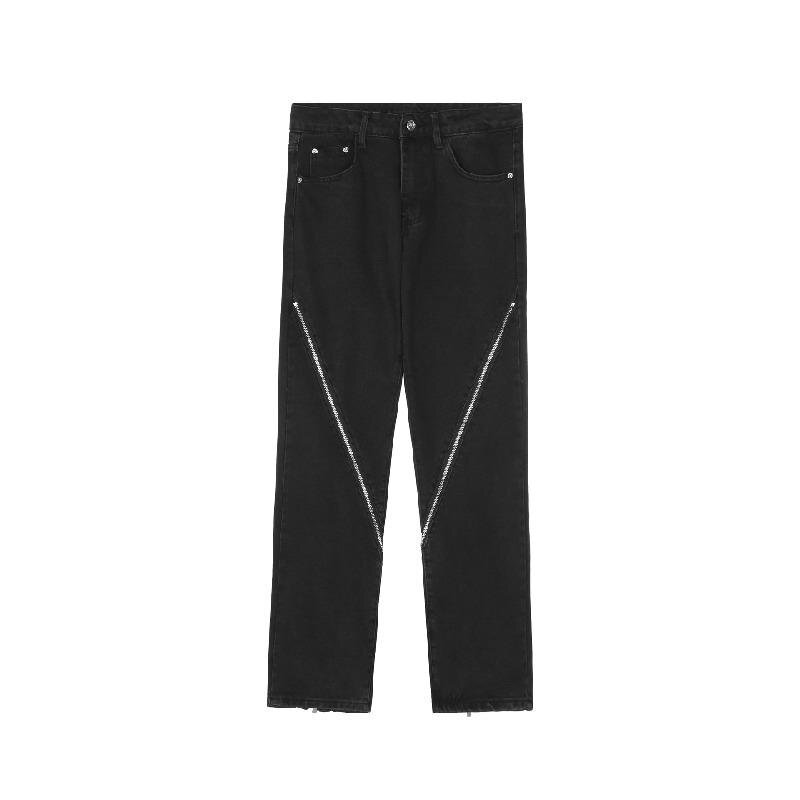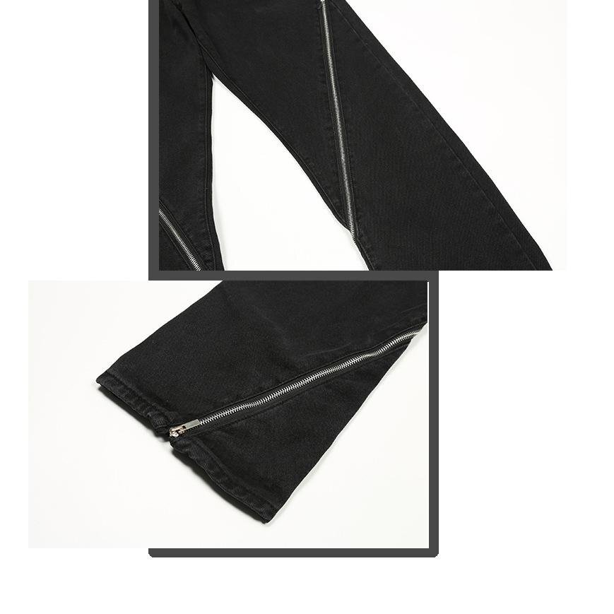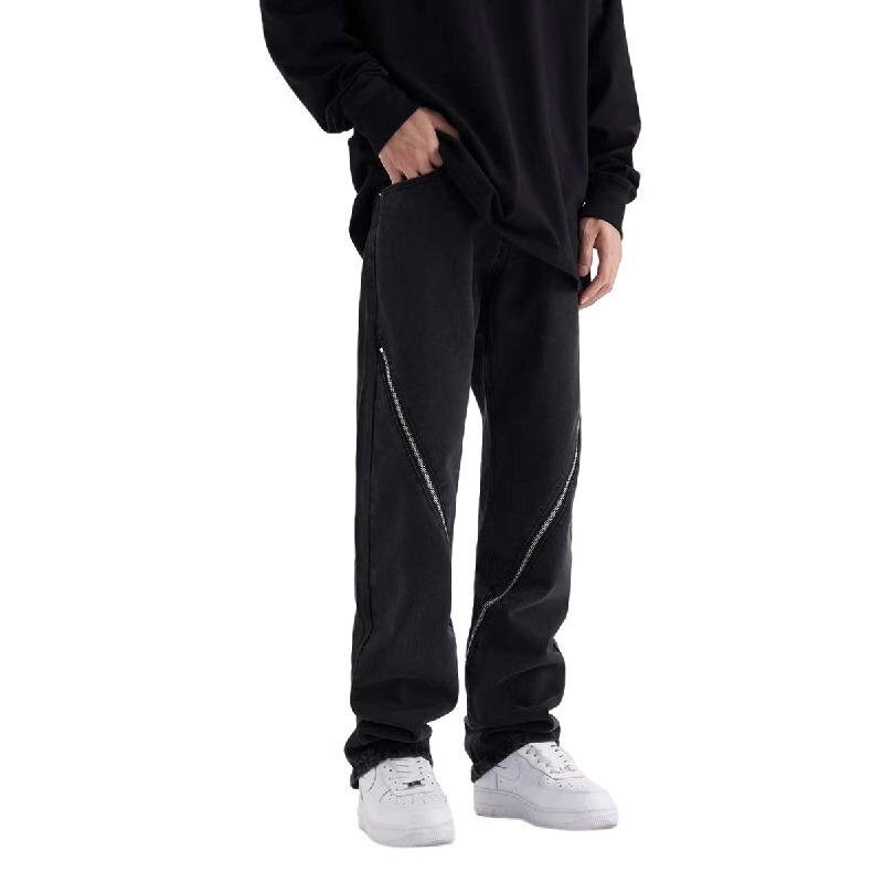 デニムパンツ メンズ ズボン ジーンズ サイドジッパー 個性 おしゃれ アメカジ ストリート系 ロングパンツ ブラック ユニセックス