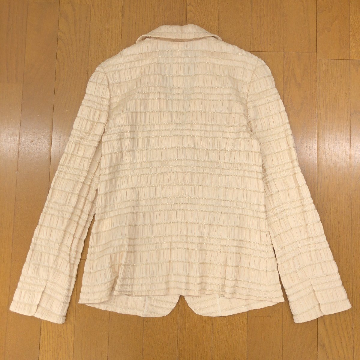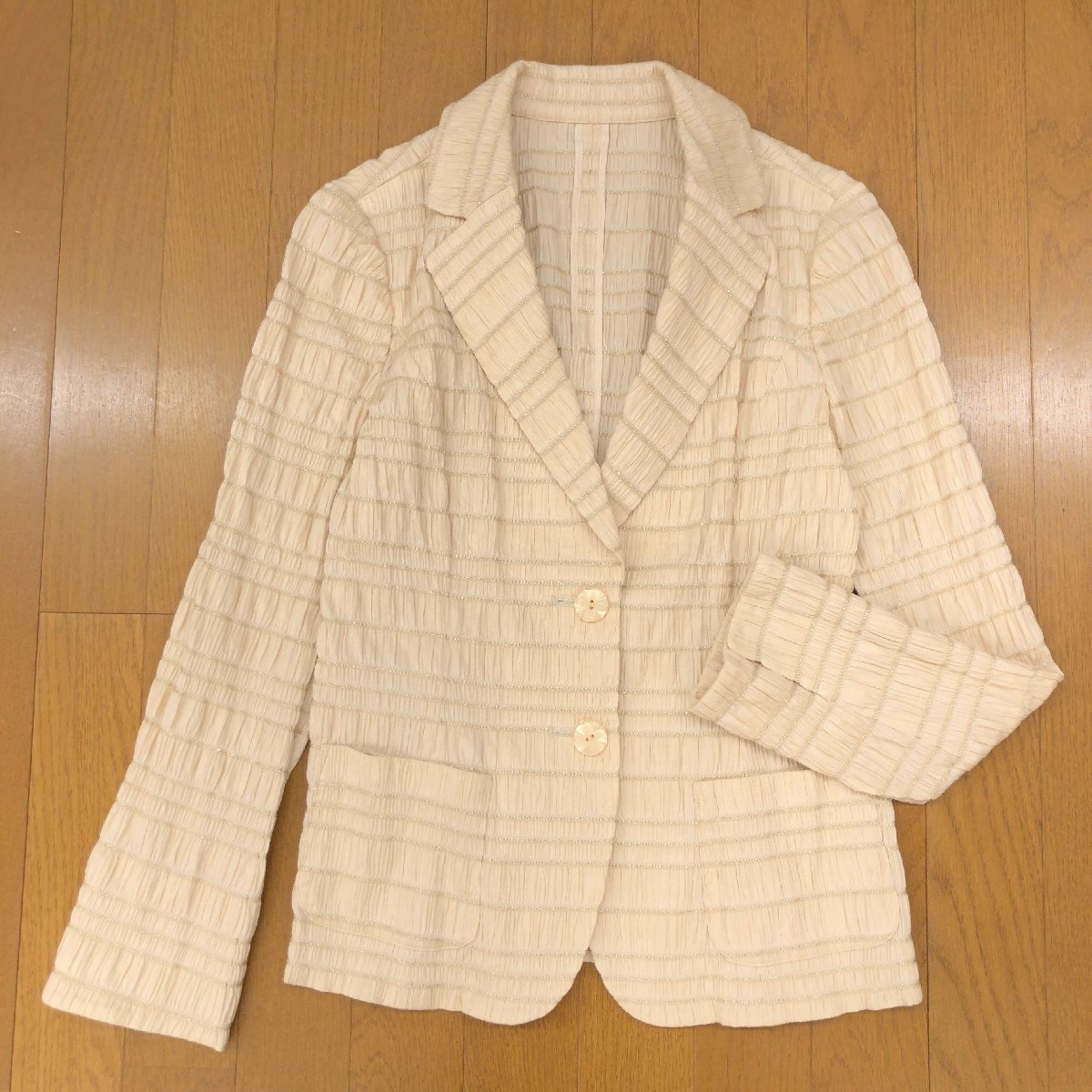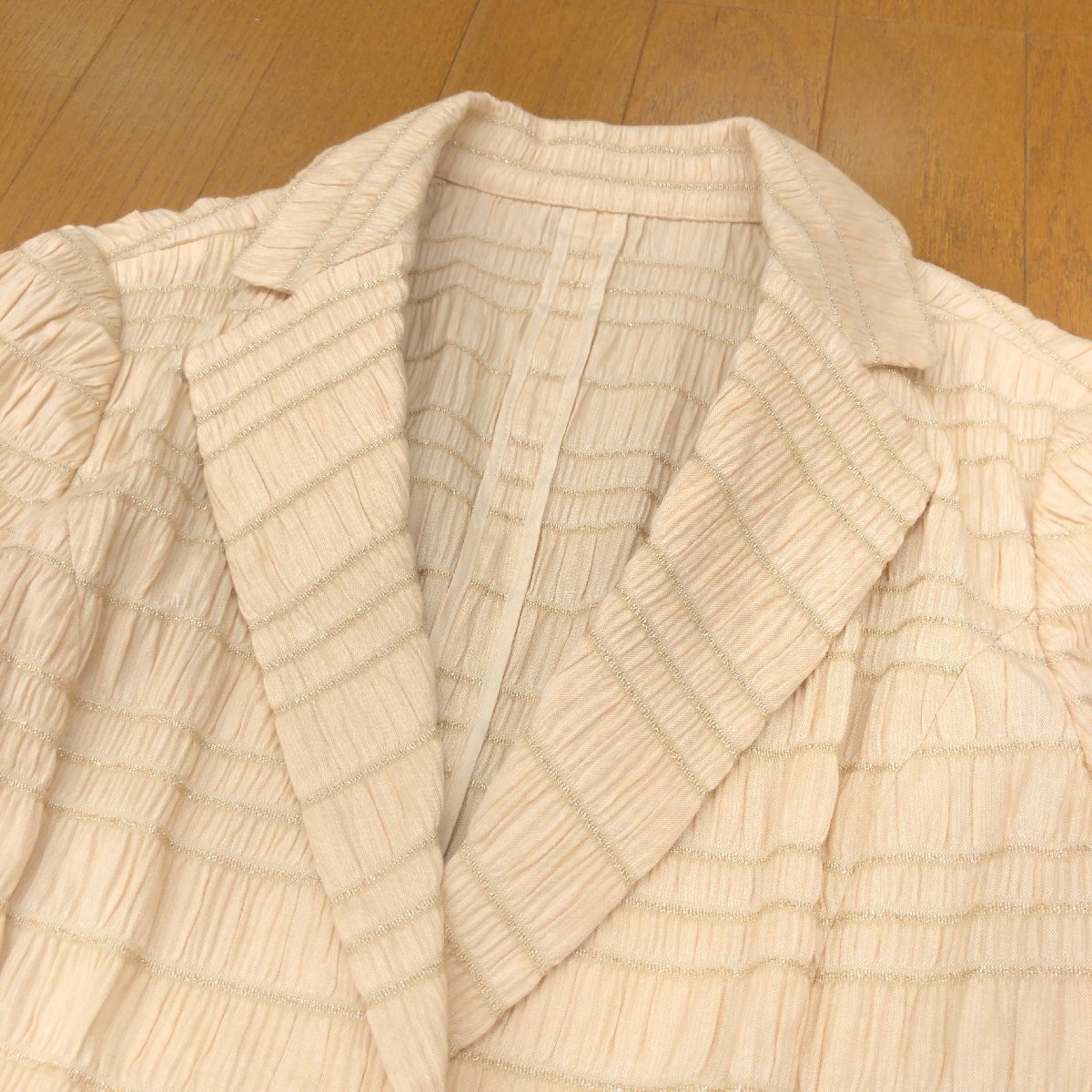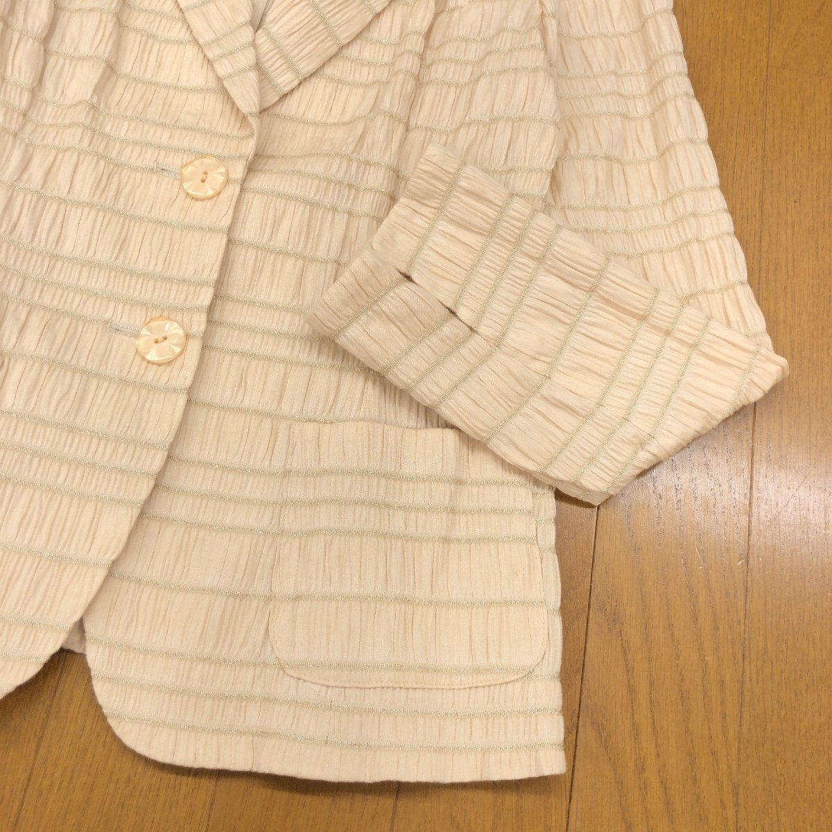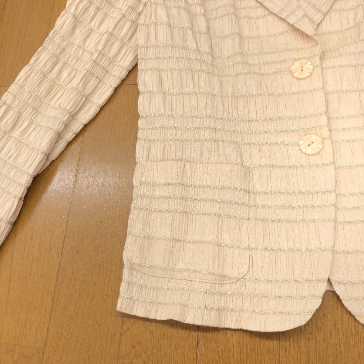 美品 Leilian レリアン ラメ入 シャーリング テーラードジャケット 9(M) ベージュ 日本製 羽織り ボーダー フォーマル レディース 婦人
