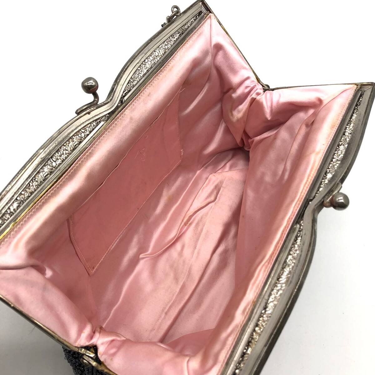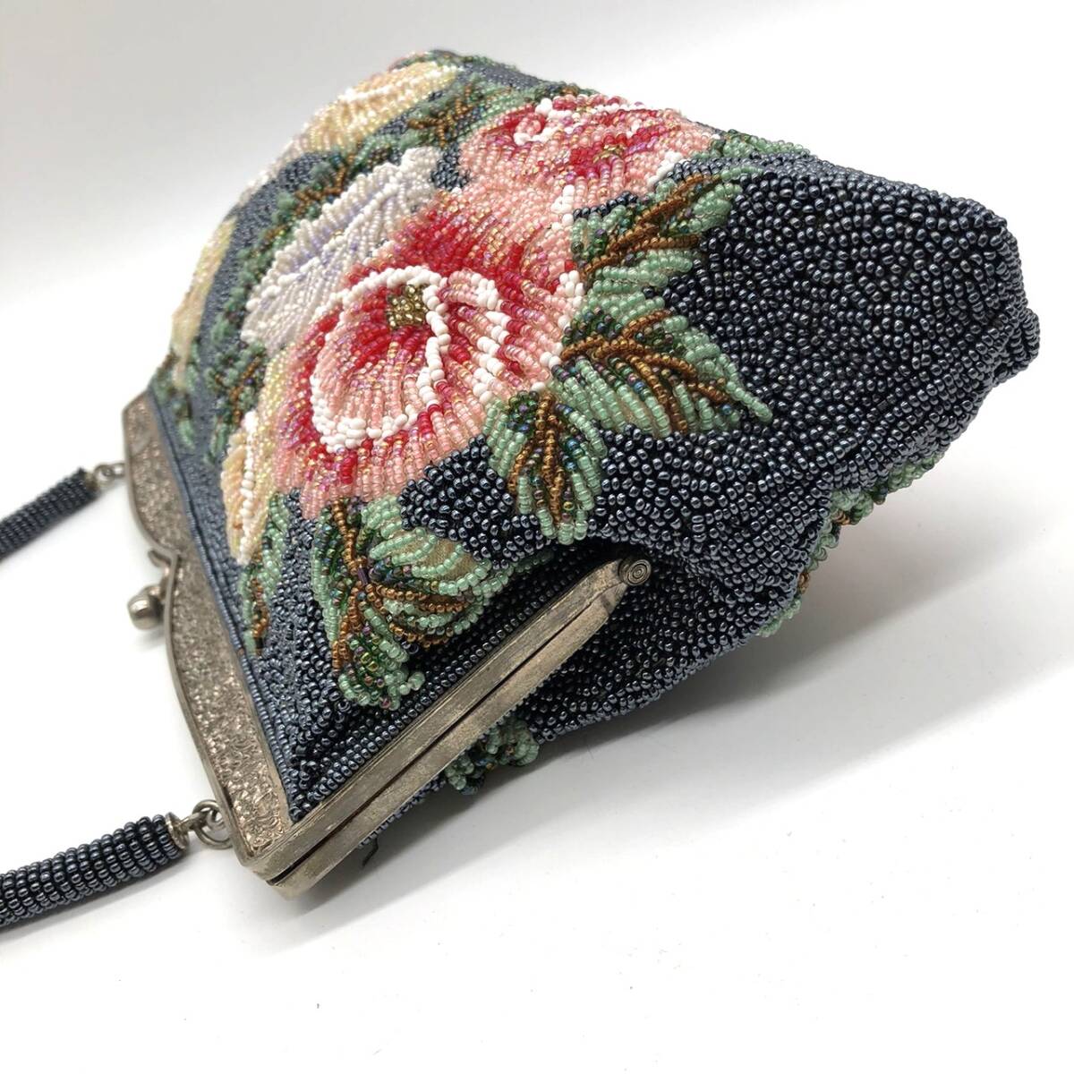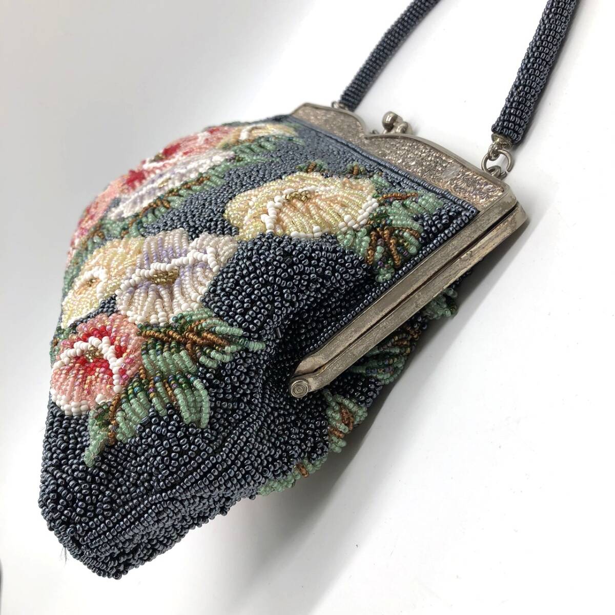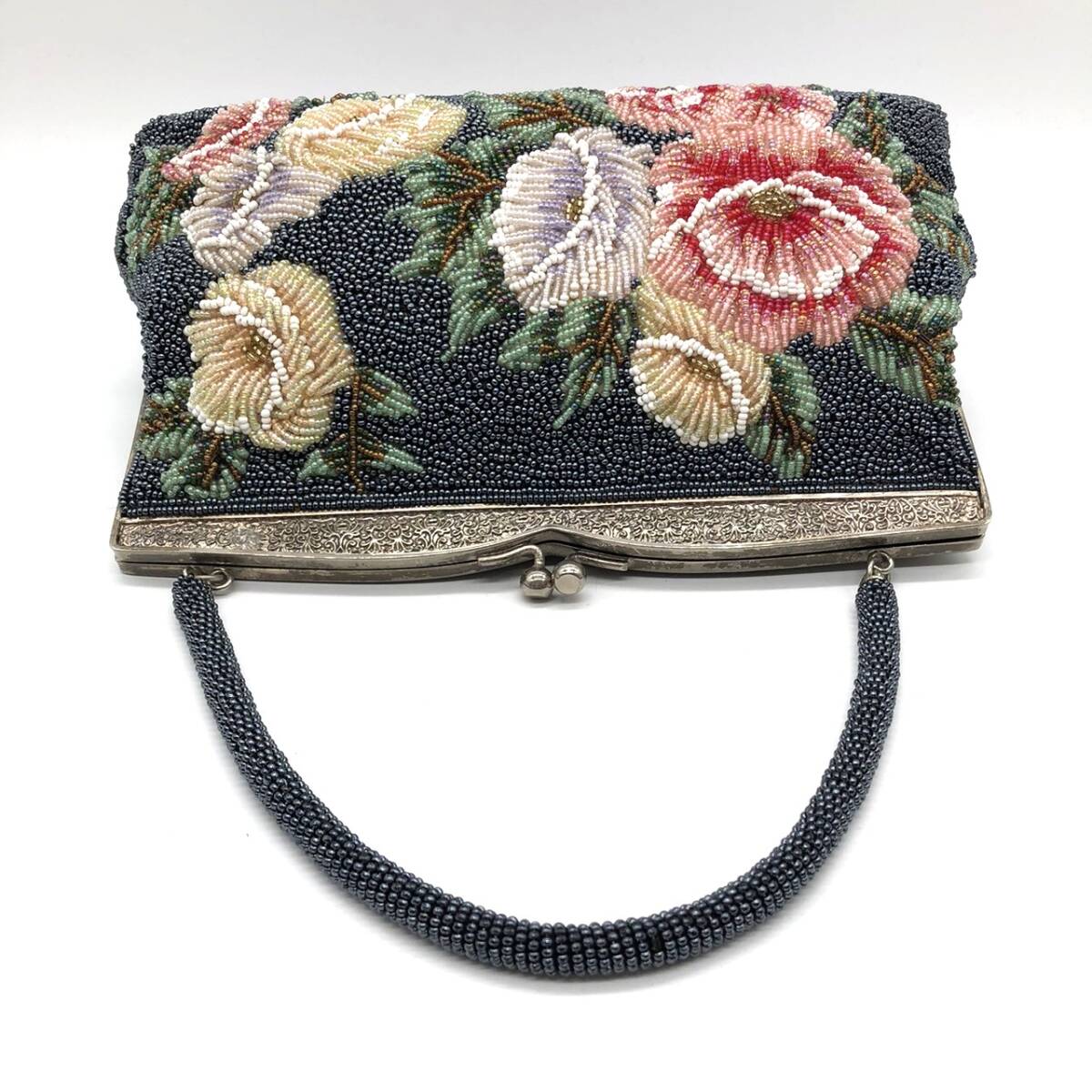 昭和レトロ ビーズバッグ がま口ハンドバッグ ヴィンテージ お茶会 パーティー 礼装 洋装 和装 ヘマタイト系花柄 |