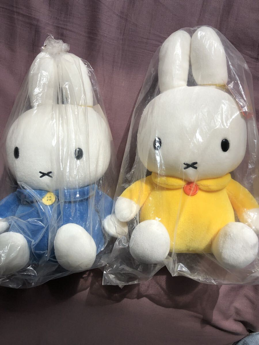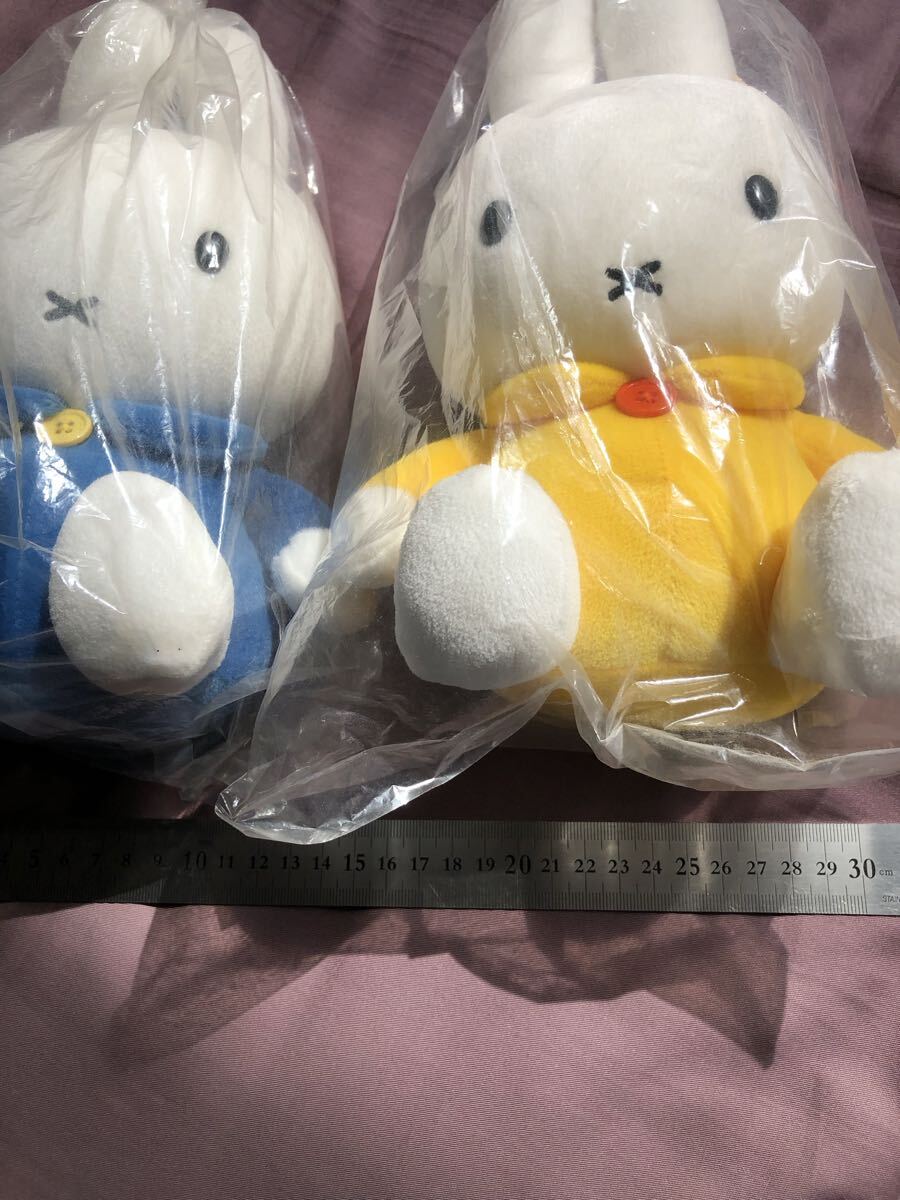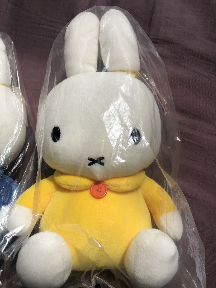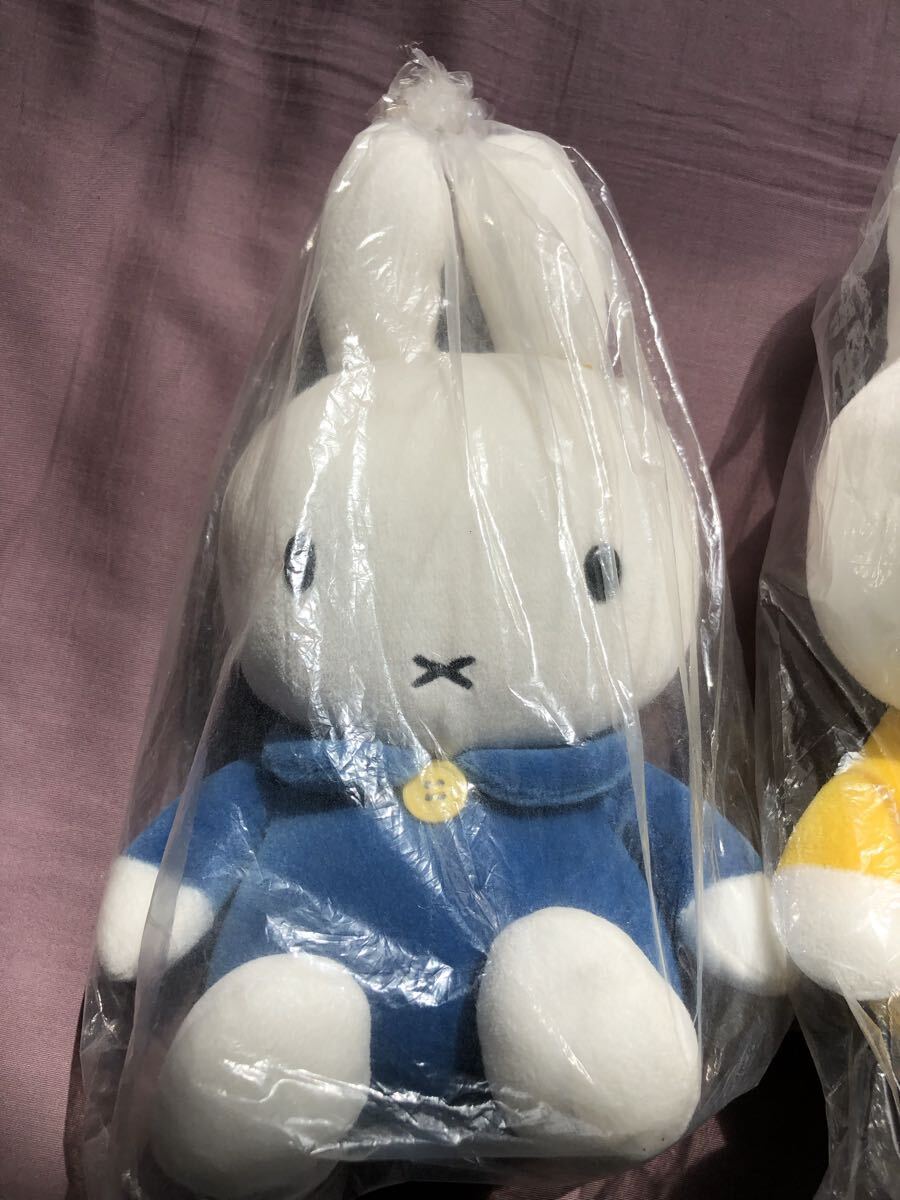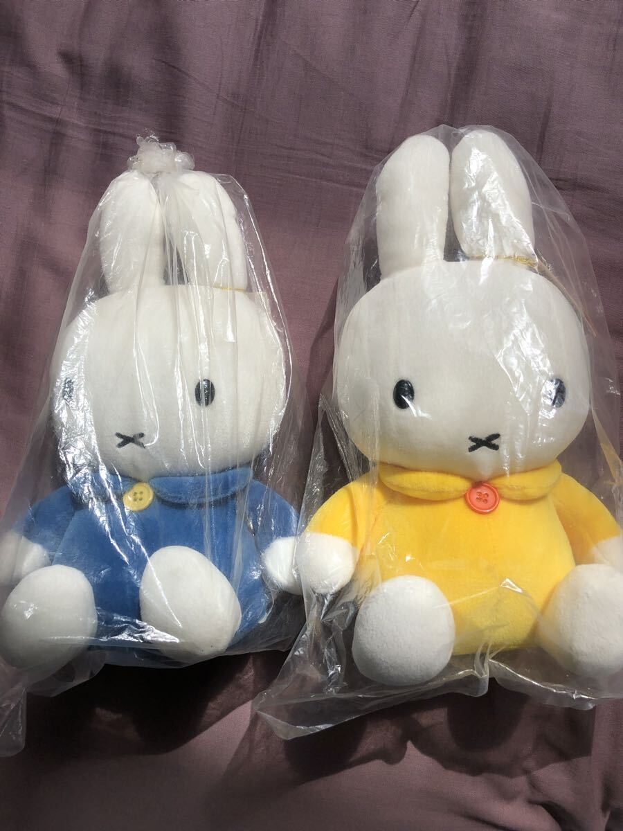 ミッフィーぬいぐるみ。青、黄セット。中古品。ビニール袋に入れて保管してました。写真で判断願います。古いものになりますので、ノークレーム、ノーリターンでお願いします。ゆうパック等で発送します。