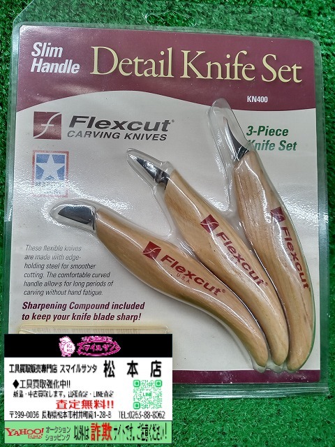 商品説明 | ~☆★☆★☆~未使用~☆★☆★☆~ ◇Flexcut ◇ミニ・ディテールナイフセット ◇型番:KN400 ◇未使用品ですが、保管状態により中の コンパウンドが少し欠けていたり、 外箱にキズ・汚れなどあります ◇仕 様 細かな木彫にぴったりの3本組 一般用よりもさらに小さいブレードを使用 全長は約13~14cm。 ブレードの厚さはいずれも0.8mm、両刃です コンパウンド付 ※画像にあるものが全てとなります。 ※中古品は仕様通りの動作保証はございません。 ※ごくまれに入札中に店頭にて販売となり売り違いが発生してしまう場合がございます。その場合は出品者都合での出品キャンセルをさせていただくことがございます。予めご了承ください。 【詐欺サイトにご注意ください】 日頃より当店をご利用いただき、誠にありがとうございます。 この度、当社の出品商品が、当社とは関係のない詐欺サイト上で掲載されていることを確認いたしました。当社の正規販売はYahoo!ショッピングおよびYahoo!オークションのみであり、これら以外のサイトとは一切関係がございません。 【お客様への重要なお願いとご注意】 詐欺サイトでのご購入は、個人情報や金銭の被害に繋がる恐れがあります。 不審なサイトには絶対にアクセスせず、個人情報の入力やご注文はお控えください。 被害に遭われた際は、最寄りの警察署または消費者センターにご相談ください。 万が一被害に遭われてしまった場合、誠に申し訳ございませんが、当社では被害に関する対応はいたしかねますので予めご了承ください。 お客様にはご心配をおかけいたしますが、ご理解ご協力のほどお願い申し上げます。レターパックでの発送となりますが、厚さが3cmまでの為 十分な緩衝材は対応できません。 予めご了承下さい。 【日本郵便 レターパックライト:全国一律430円】 | 出品店舗 | スマイルサンタ 松本店 |