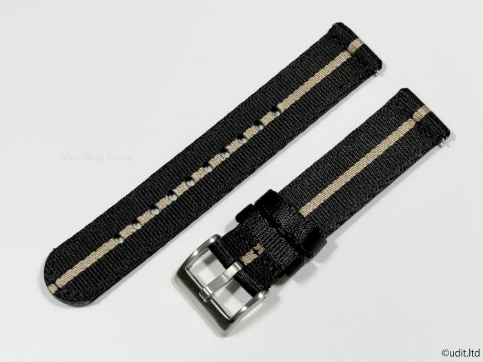 ラグ幅20mm 高品質 艶あり 分割NATOベルト ストラップ 腕時計ベルト ブラック ベージュ ストライプ シルバー尾錠 時計用バンド DBI