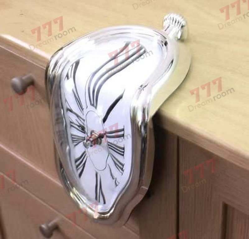 アートウォールクロックアメリカン雑貨 デザイン面白おもしろアンティーク インテリア置き時計 90度曲がったアートクロック(シルバー)