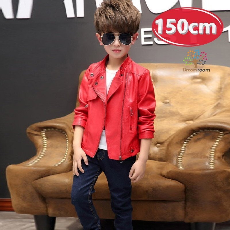 1スタ☆kids boy 2way ライダースジャケット 【レッド 150cm】 韓国子供服 レザー ハード ライトアウター K-265