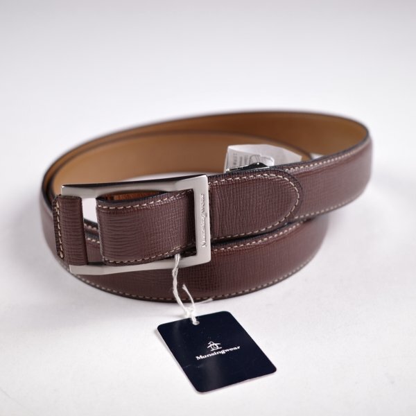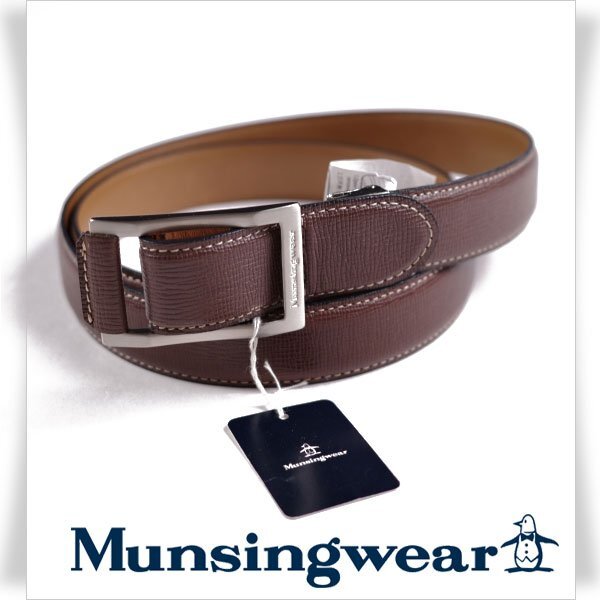 Munsingwear マンシングウェア メンズ 日本製 牛革レザー 本革 ビジネスベルト ロゴ 茶 フリーサイズ ブラウン |
