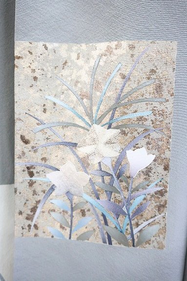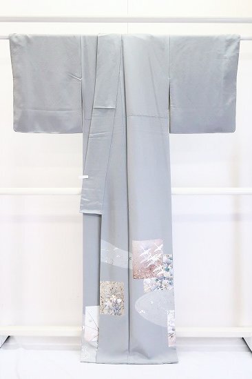 〔着物の色〕 薄いブルーグレー 〔八掛の色〕 共生地 〔着物の素材〕 正絹 |