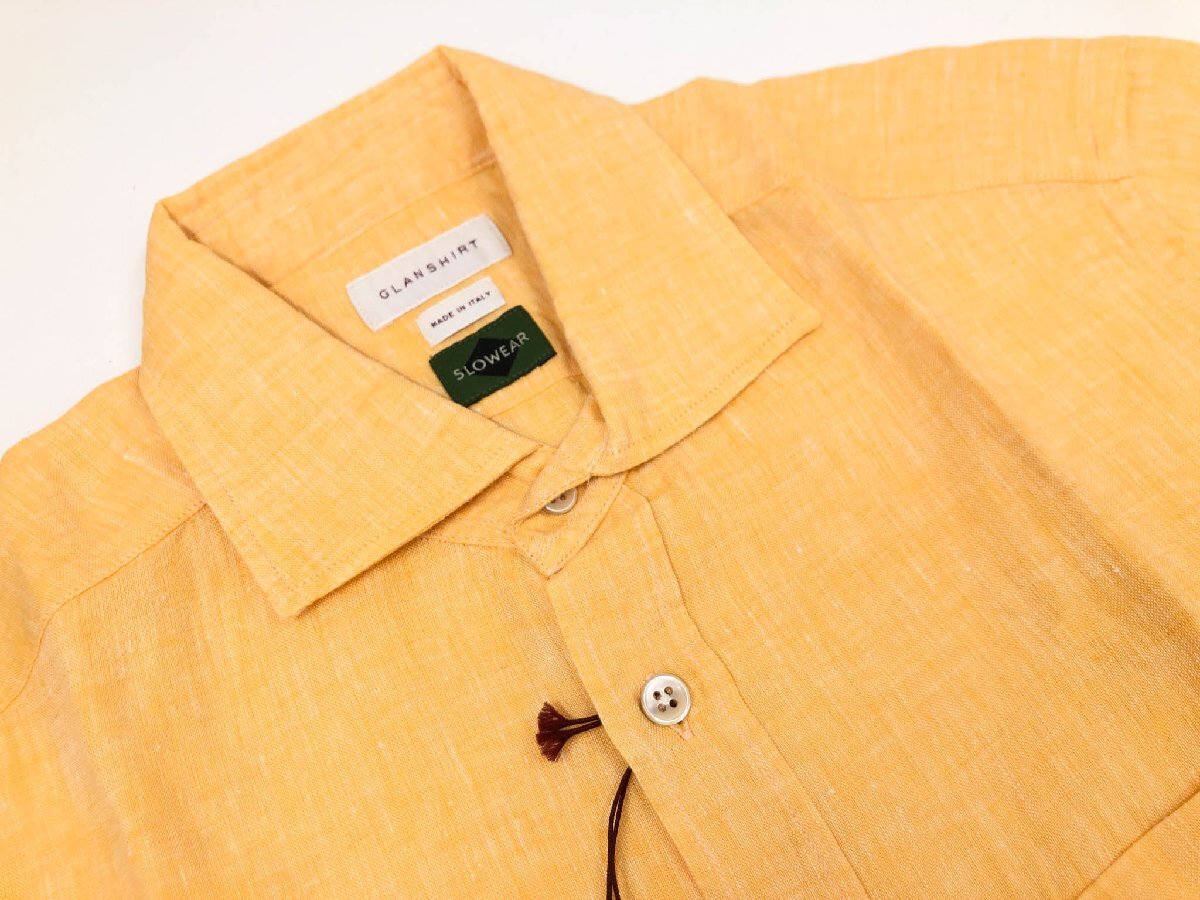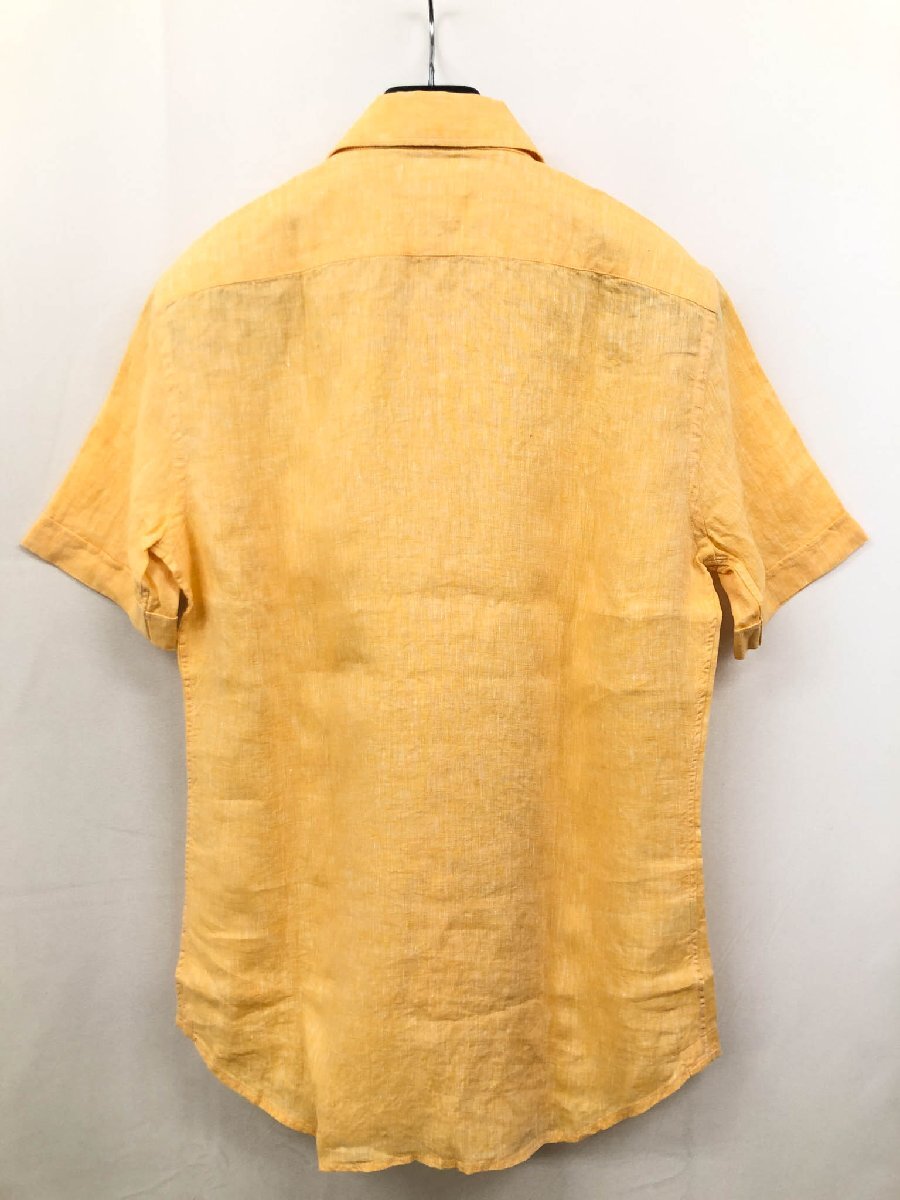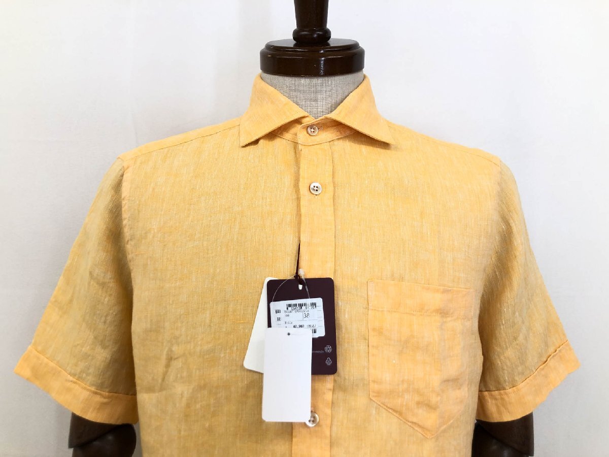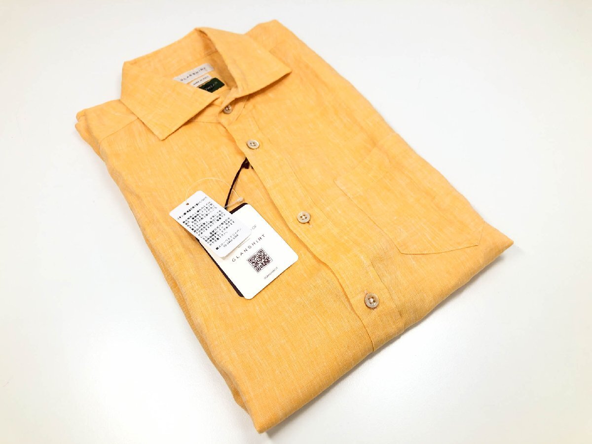 未使用【グランシャツ GLANSHIRT】5XED0T G7045 300 定価42900円 リネン100% 半袖シャツ (メンズ) size38 オレンジ系 伊製 ◇17GRS282◇