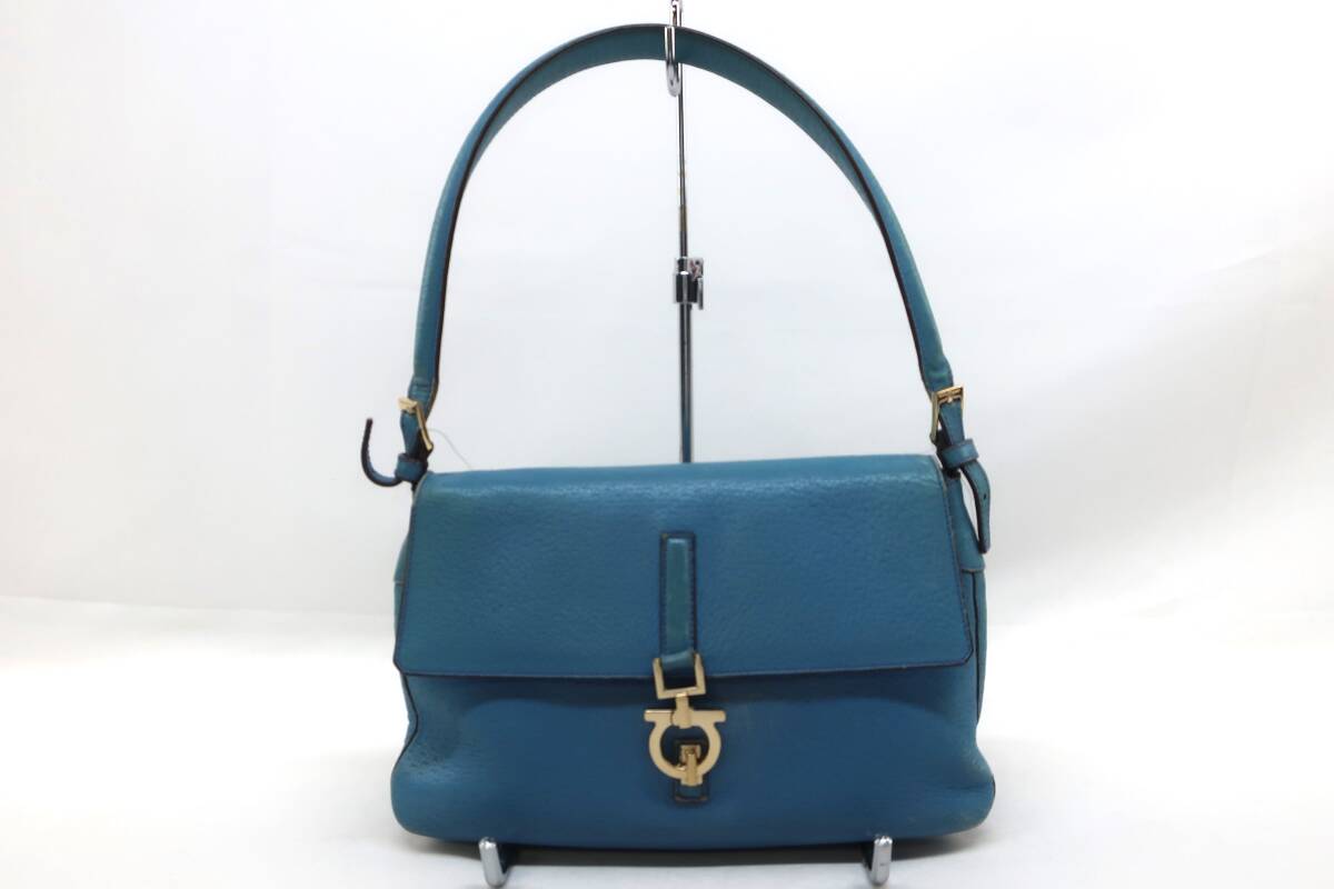 ★【S送900円】2784 Salvatore Ferragamo サルヴァトーレフェラガモ イタリア製 ワンショルダーバッグ ガンチーニ レザー ブルー