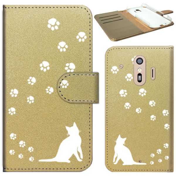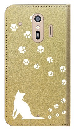 docomo らくらくスマートフォン F-01L/F-42A ケース 手帳型 (ねこの足跡いくつ?/ホワイト) FUJITSU F-01L-PD-GDR-YSZ-0141