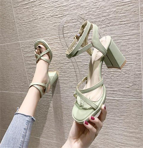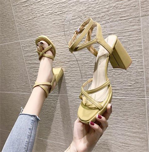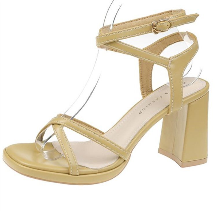サンダル デザインセンス ミドルヒール ハイヒール 35 ベージュ