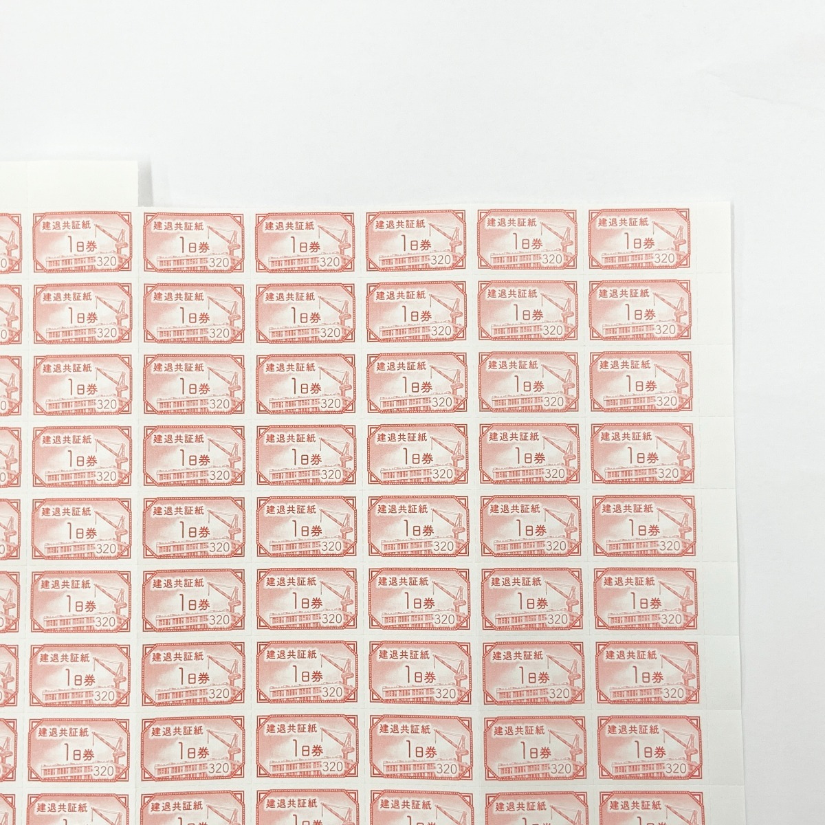 【商品名】中古 建退共証紙 建設業退職金 1日券 320円 バラ1枚 シート 1枚(合計 101枚)額面総額32320円分 未使用に近い