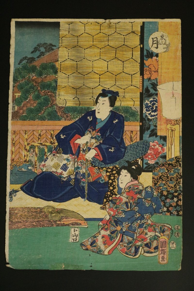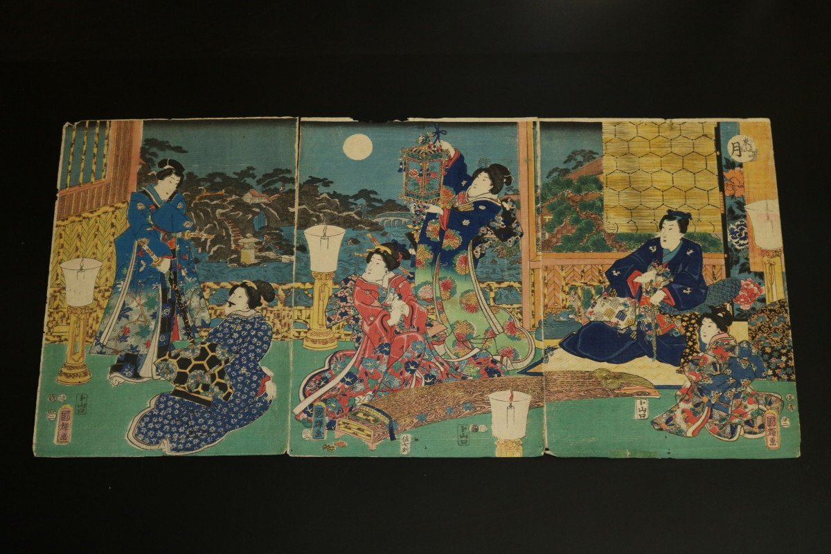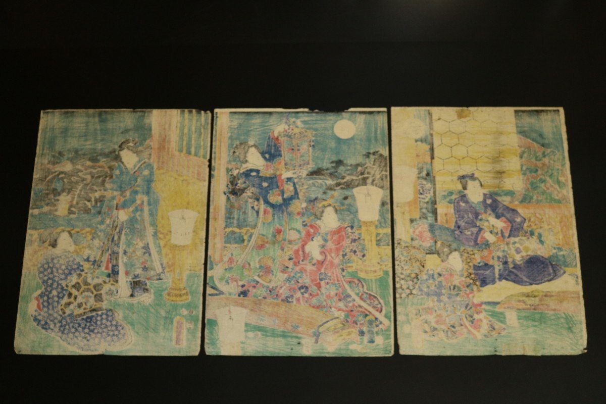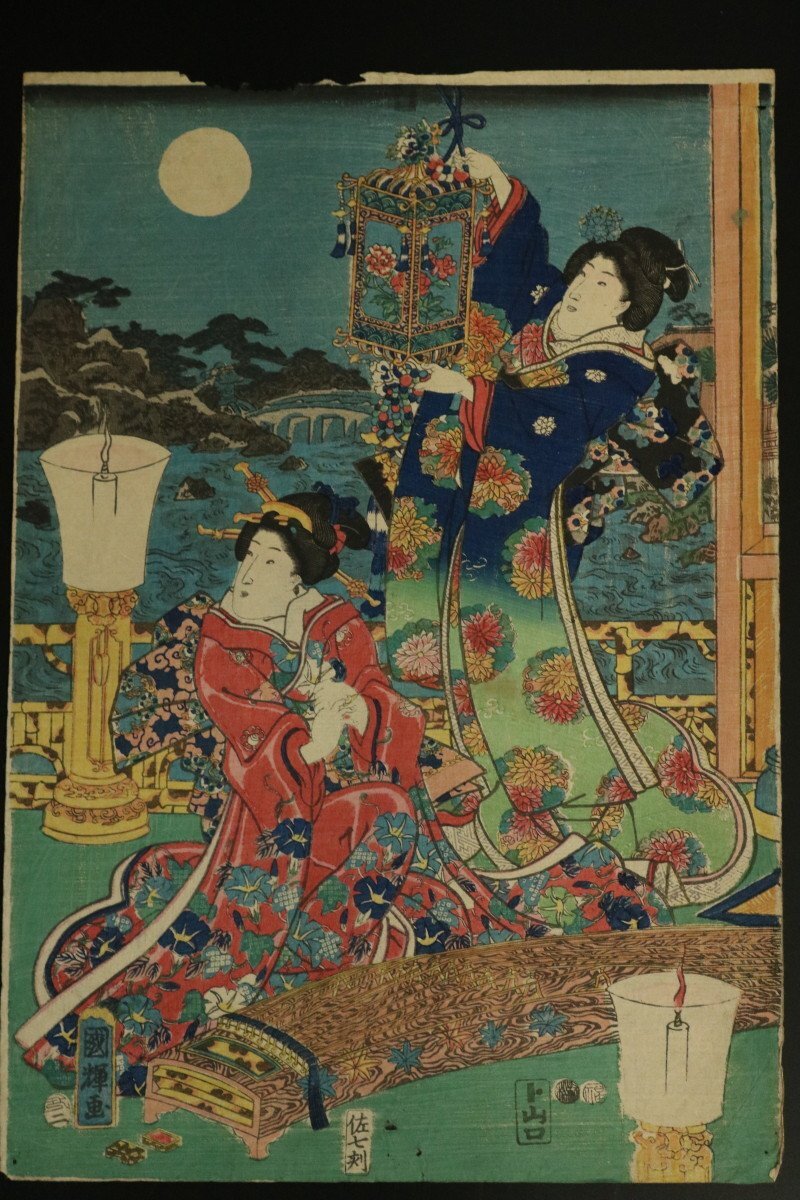 T360 木版画3枚 国輝 美人画 錦絵 浮世絵 絵紙 アンティーク 古道具/55015