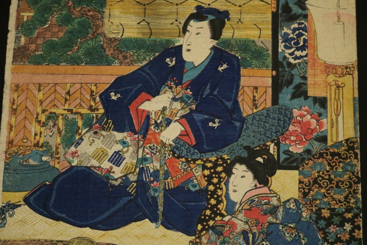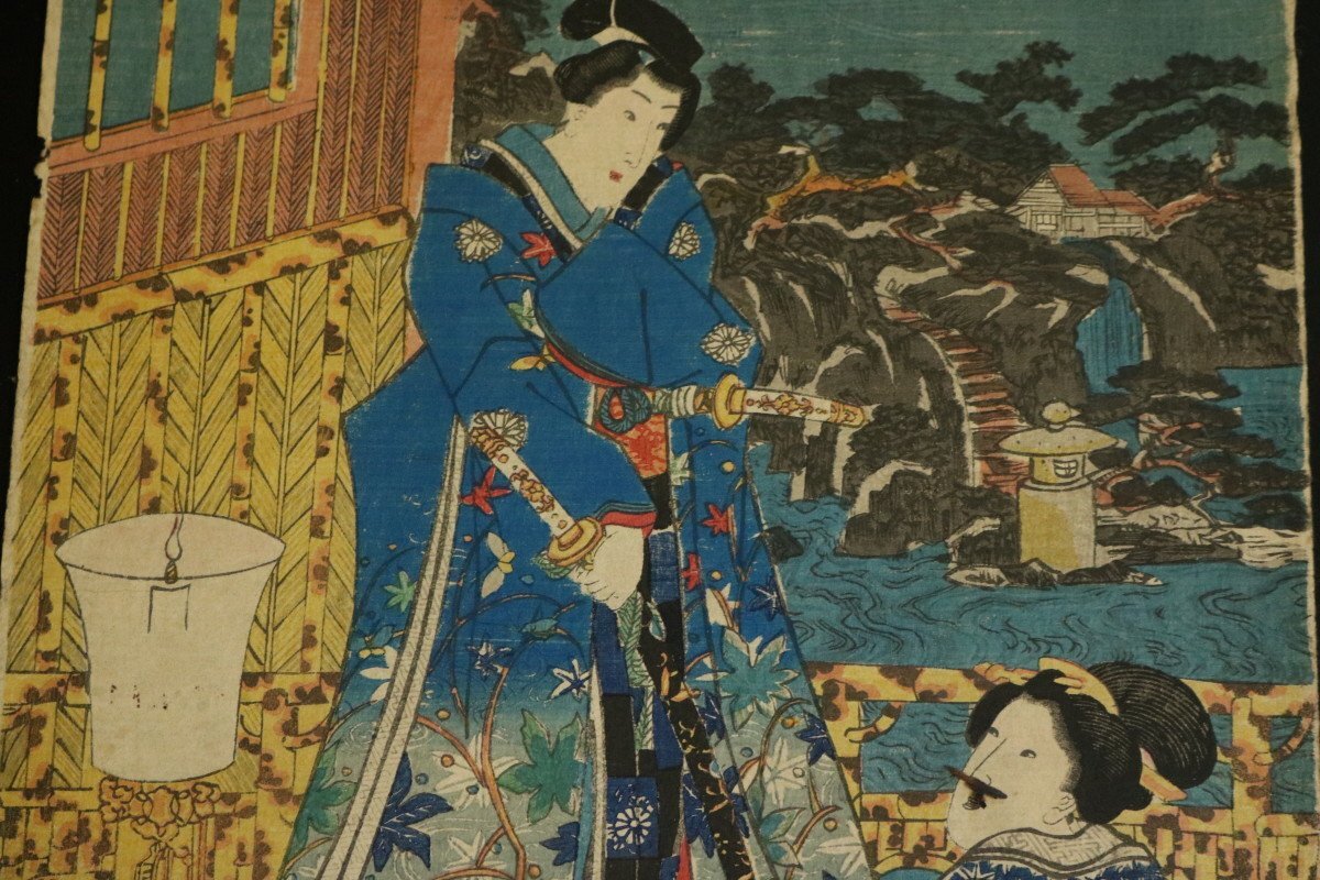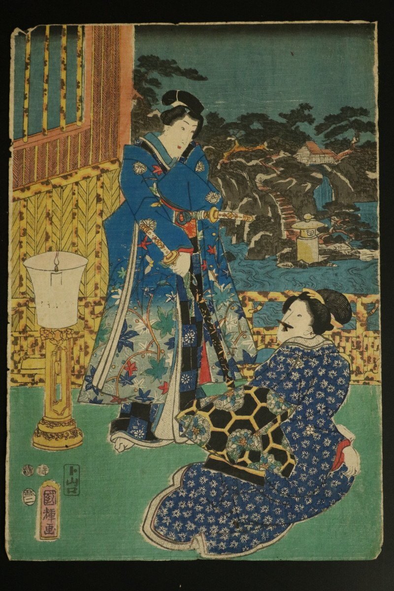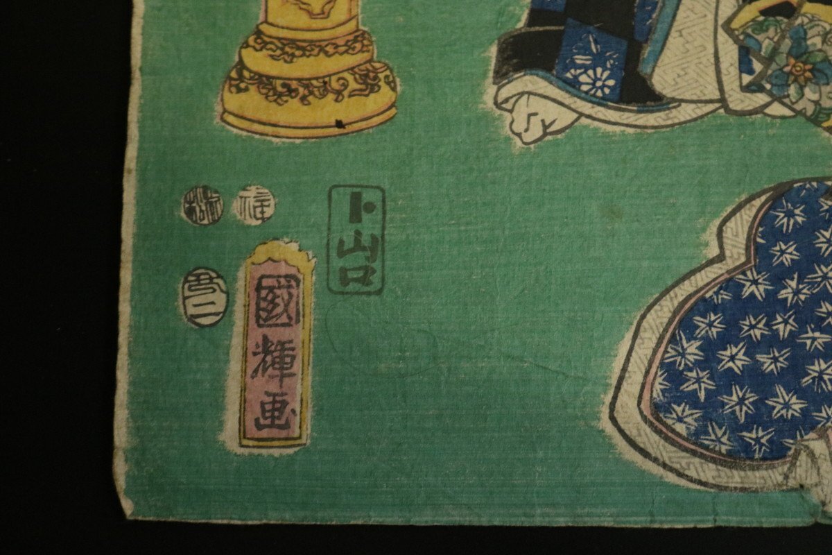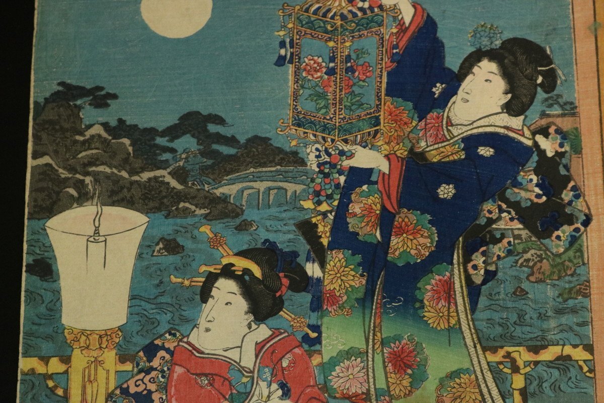 T360 木版画3枚 国輝 美人画 錦絵 浮世絵 絵紙 アンティーク 古道具/55015
