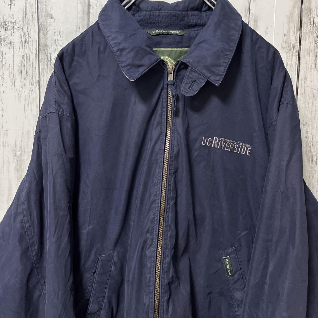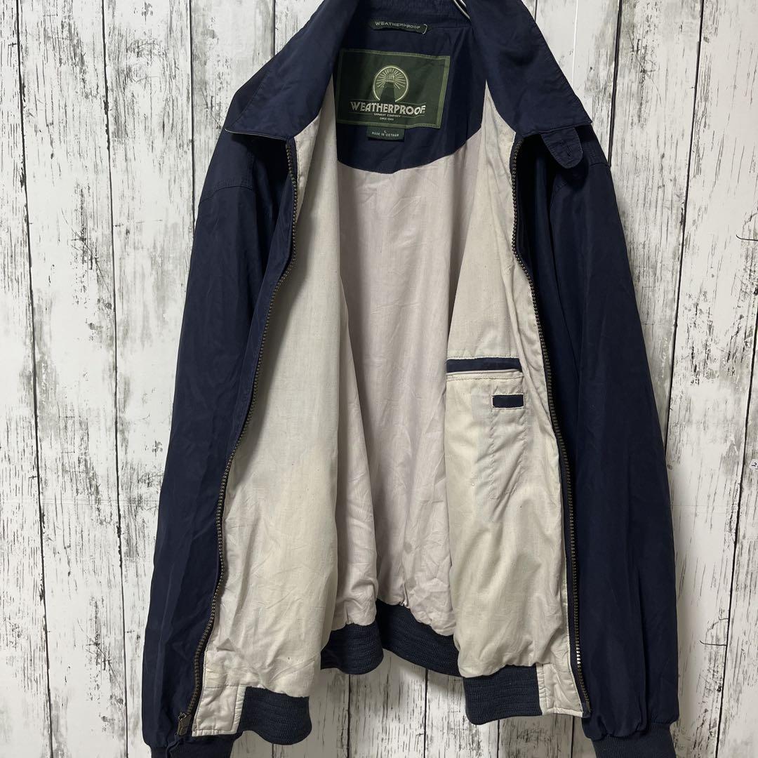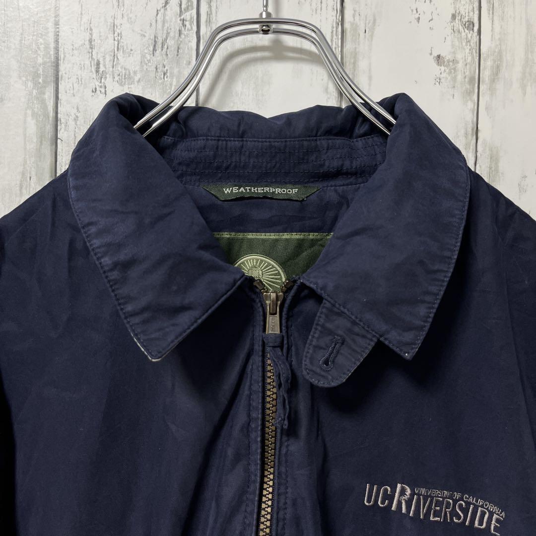 C2576 ウェザープルーフ スイングトップ ブルゾン ネイビー 刺繍 海外古着 アメリカ古着 ジャンパー アウター スポーツ 上着 カジュアル L