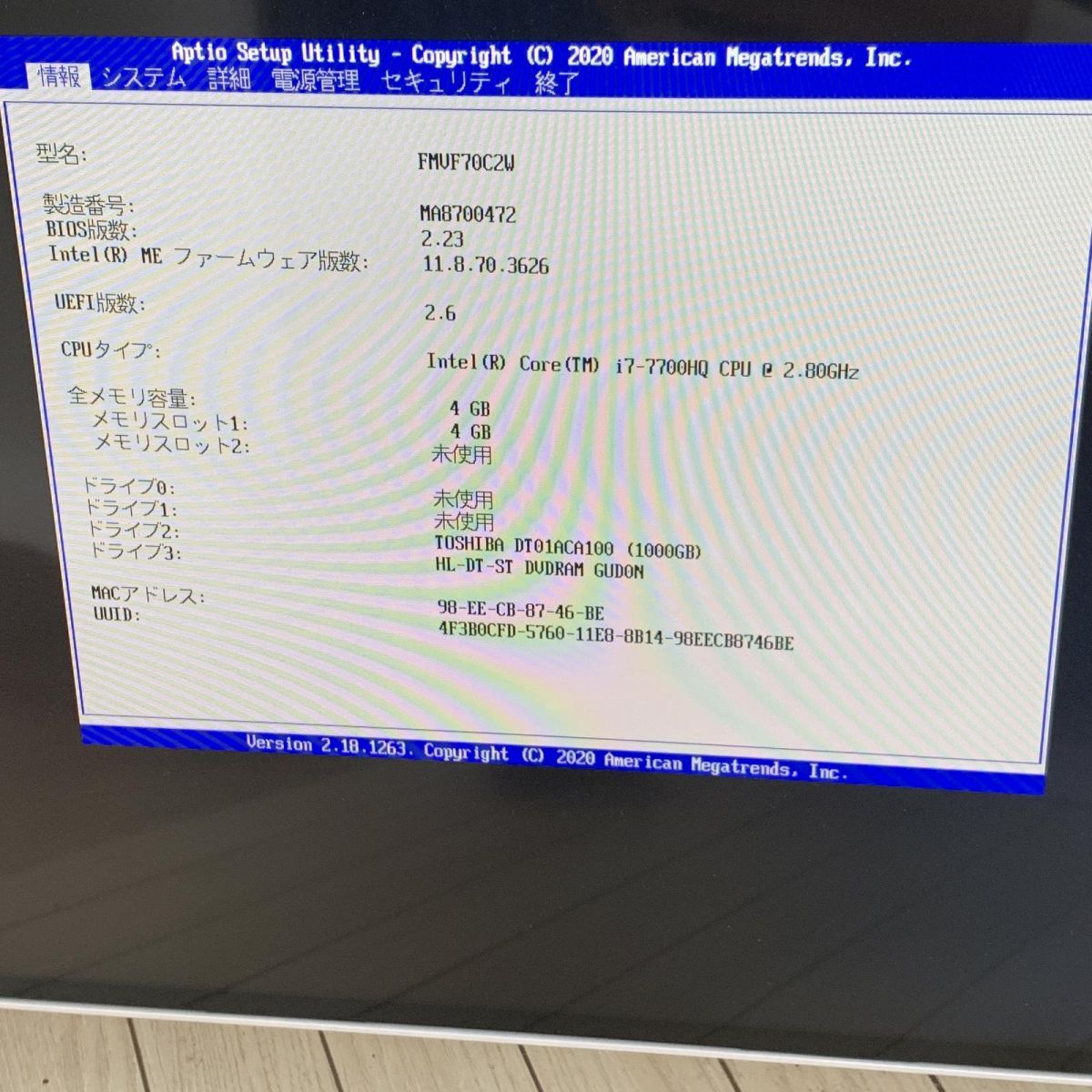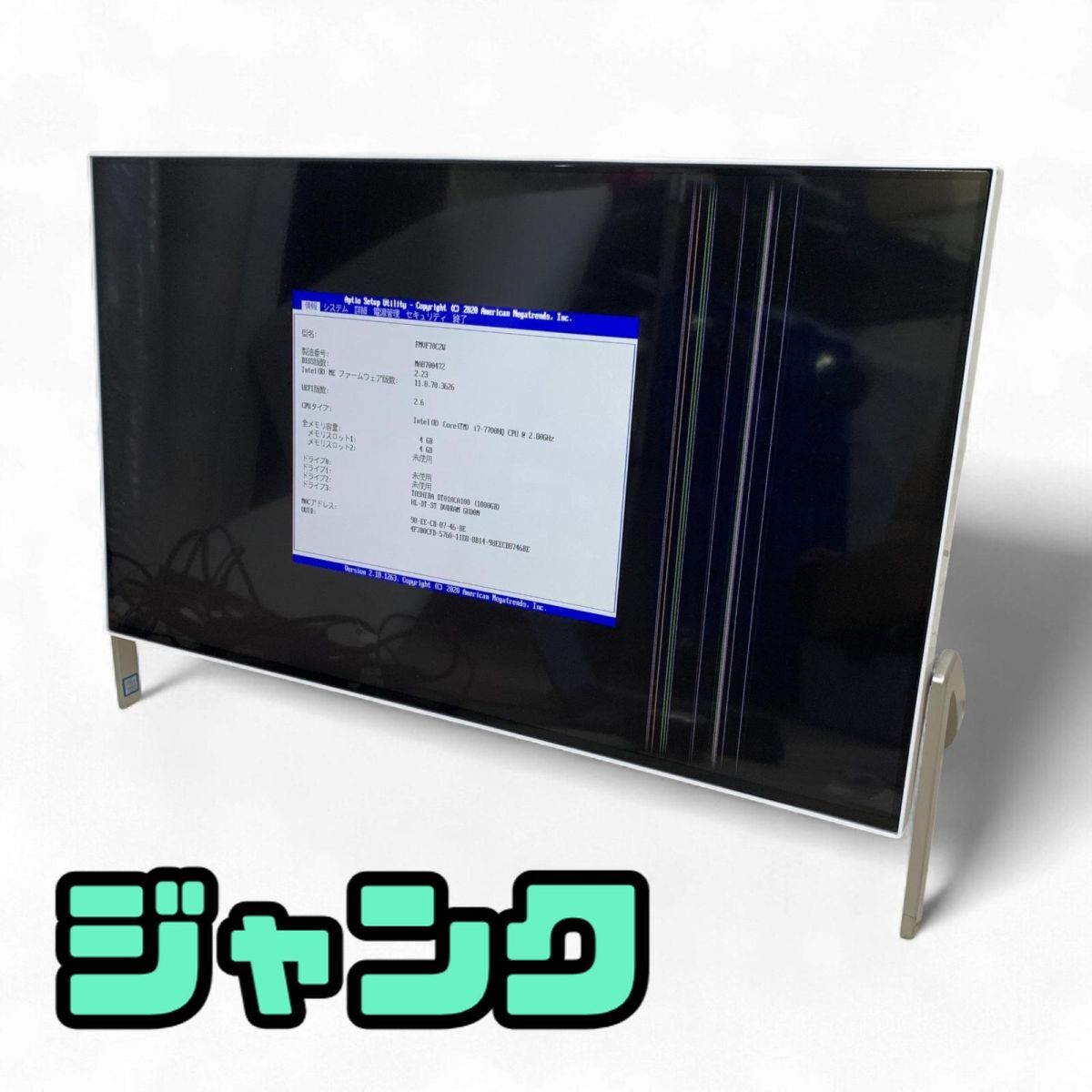 通常起動のみ確認済みです。 画面にライン抜けがあるため、ジャンク品となります。 その他、破損等共に一切の動作未確認となります。 記載のない不具合がある場合がございます。 専用ソフトにてデータ消去後、OS再インストール済みです。 OS windows 10 | ||||||||||||||||||||