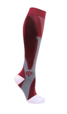 新品☆ふくらはぎサポートソックス アシスト・疲労軽減・加圧・予防・靴下・ハイソックス☆エンジ 左右セット☆送料無料 こむら返り予