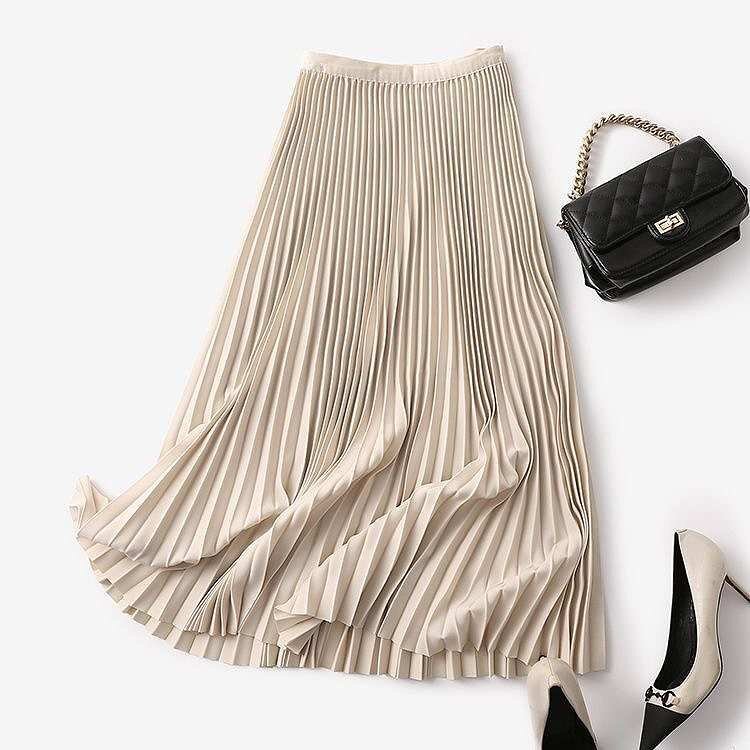 プリーツスカート ロングスカート カジュアル スリムAライン シンプル かわいい レトロ XL コーヒー