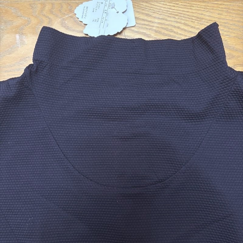 タートルネックデザインが首元をすっきりと見せ、シンプルながらも上品な印象に。