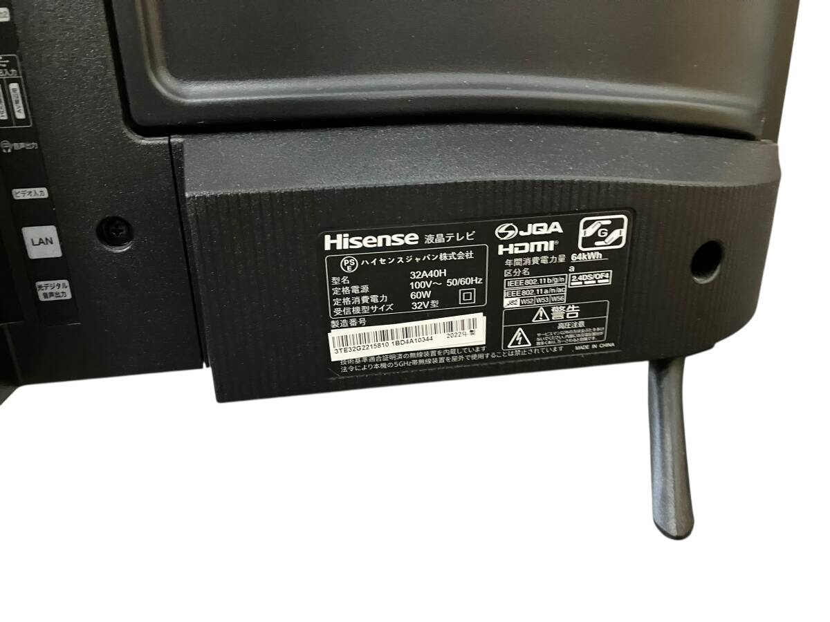 お10-066aJ【中古品】【現地引取品】Hisense 32型液晶テレビ 32A40H 2022年製 起動のみ確認済み