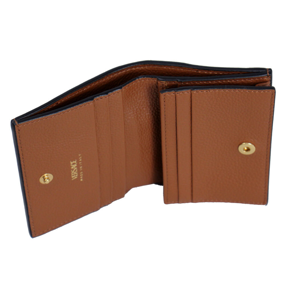 ローマの美徳と勇気の神にちなんで名付けられたベルサーチの二つ折り財布です。 レターV デザインのキルティング レザー仕上げで、バロッコ レターV モチーフを装飾としてあしらったデザインになっています。 コンパクトで小さめのバッグをお使いの方におすすめです。 札入れは一万円札がギリギリ入るサイズ感で、千円札は余裕を持って入れられます。 | |