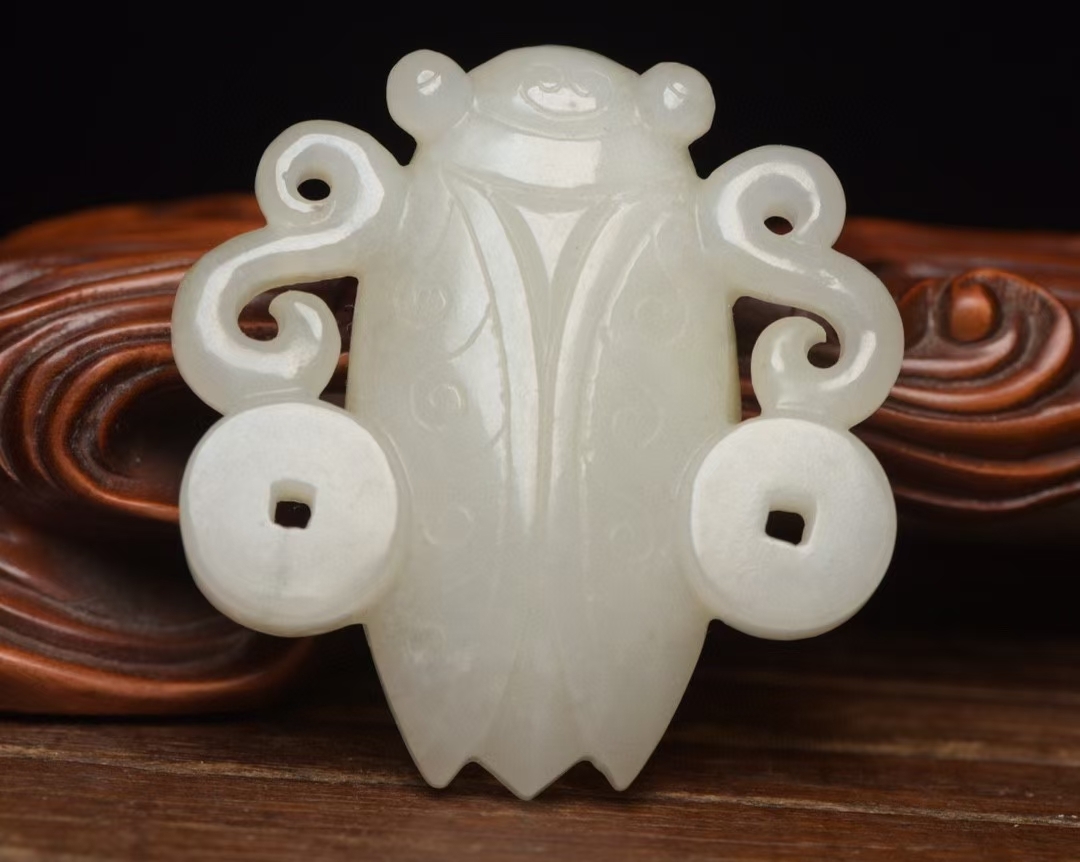 【超珍館蔵】和田玉製 細密彫 鏤空彫 玉蝉 置物 賞物 古賞物 古董品 古美術品 時代物 旧家蔵出 稀少珍蔵品
