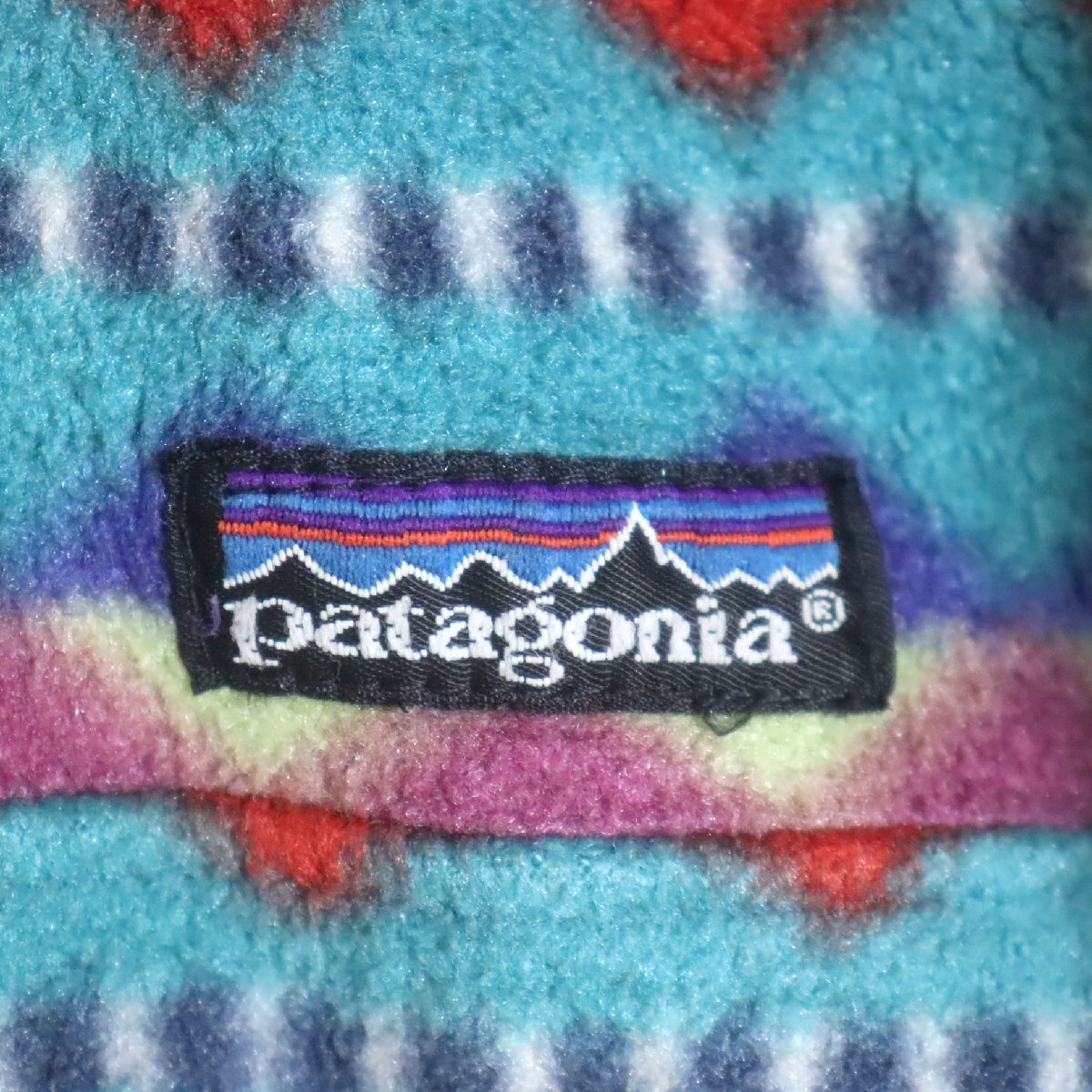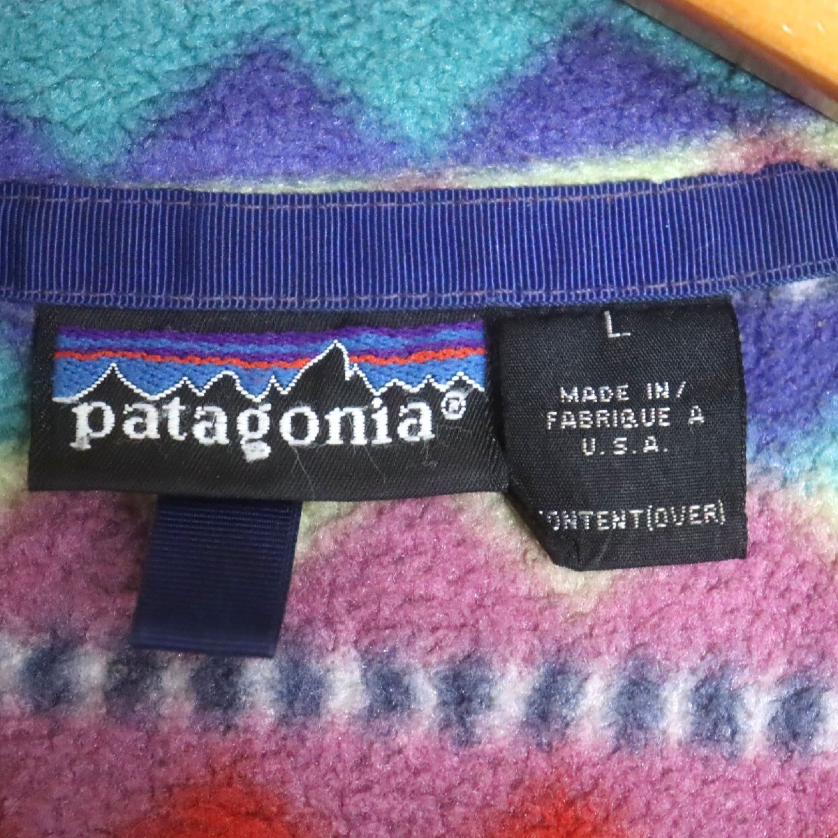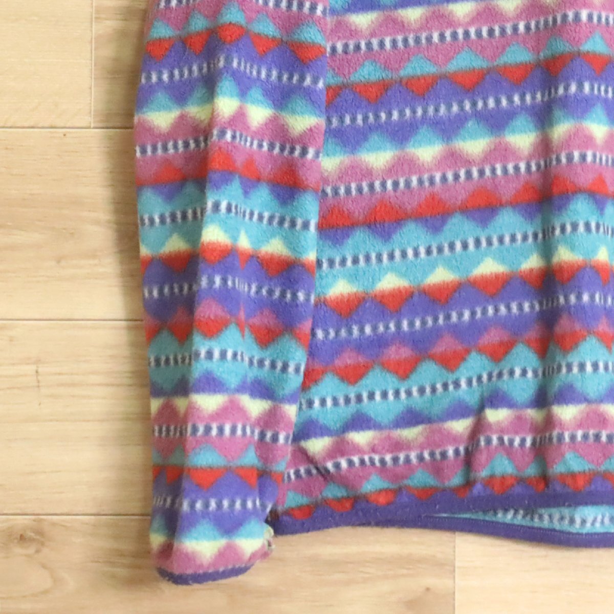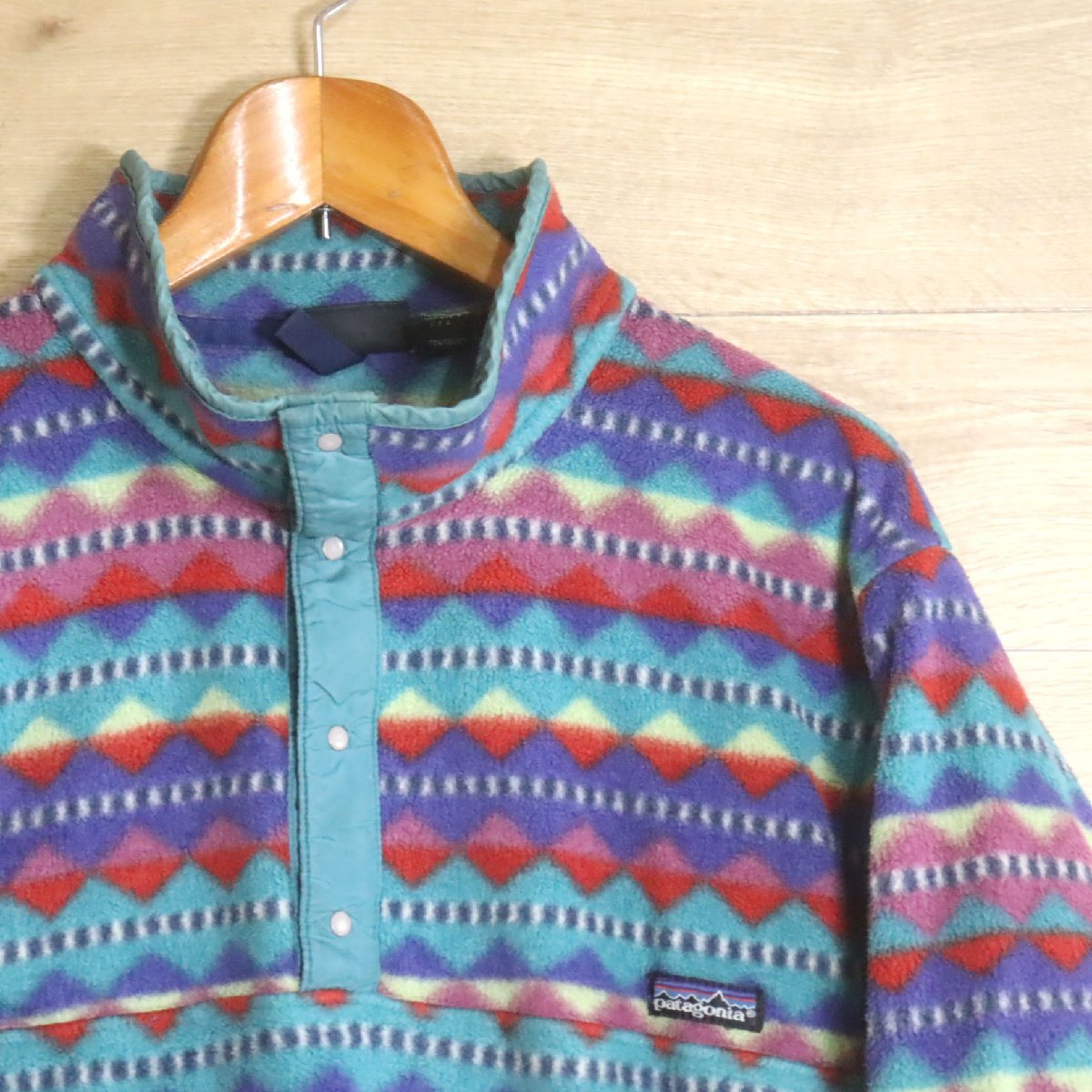 B2Y/R8.5-6 90s USA製 patagonia パタゴニア フリースジャケット シンチラ プルオーバー スナップT ダイヤモンド柄 総柄 L