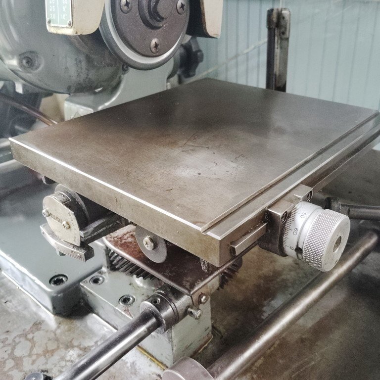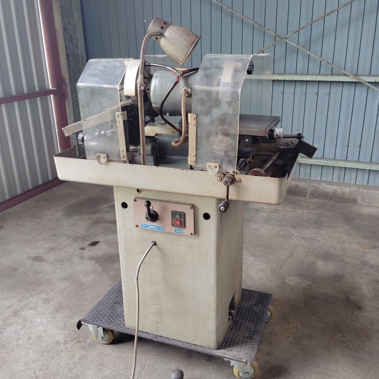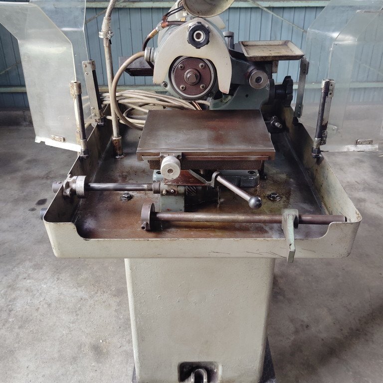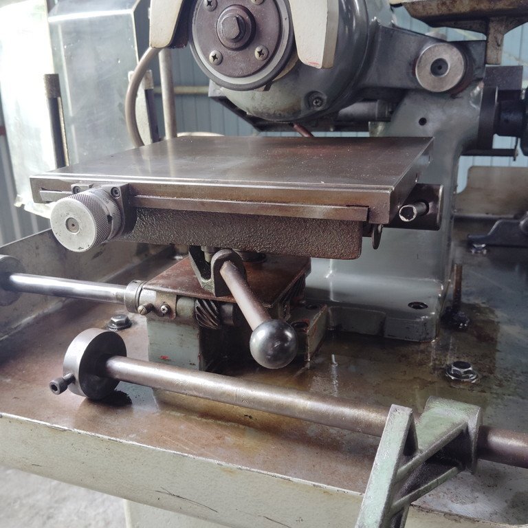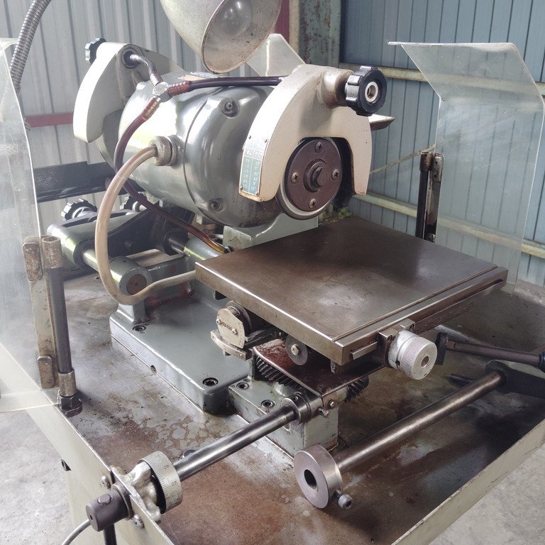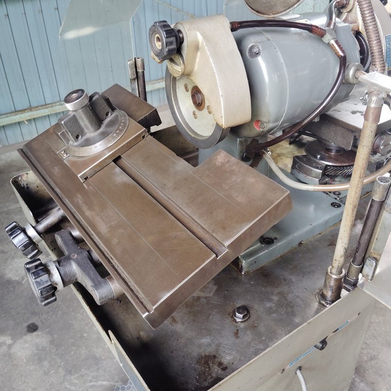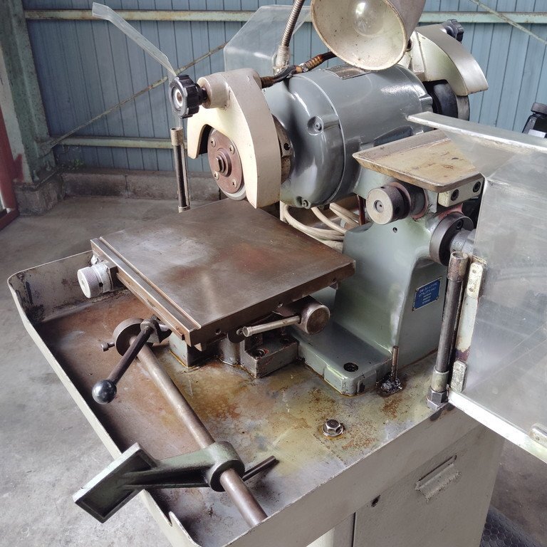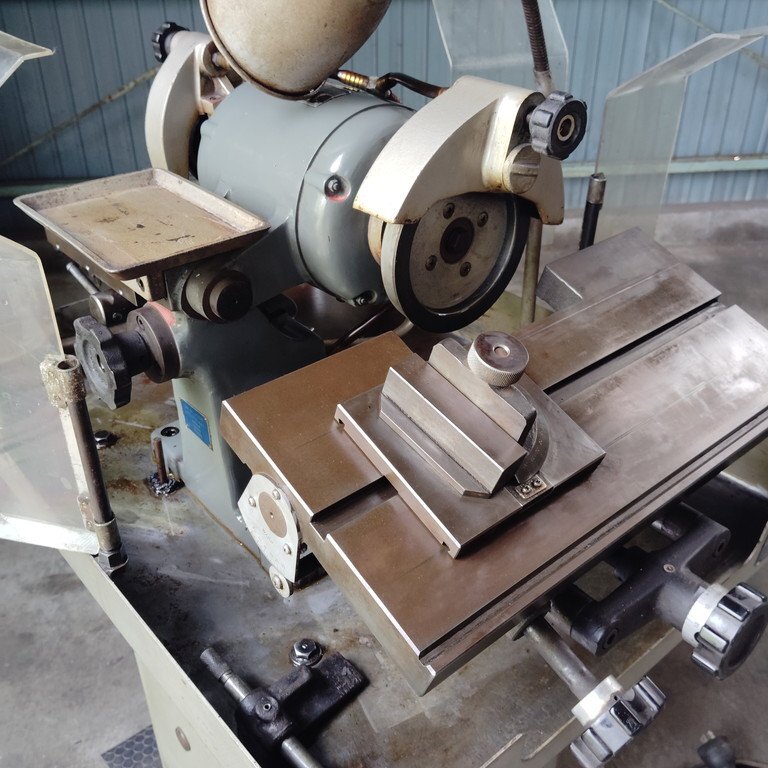 商品の状態 | ●中古品。台車は付属しません。現状販売となります。異音や異常振動なく、非常に静かに回転し、各テーブルの可動部もスムーズに可動します。切削油も調子よく循環します。 ★テーブルの傾斜や角度など、一般的なバイト研削盤に比べて色々な動きができるタイプです。 |