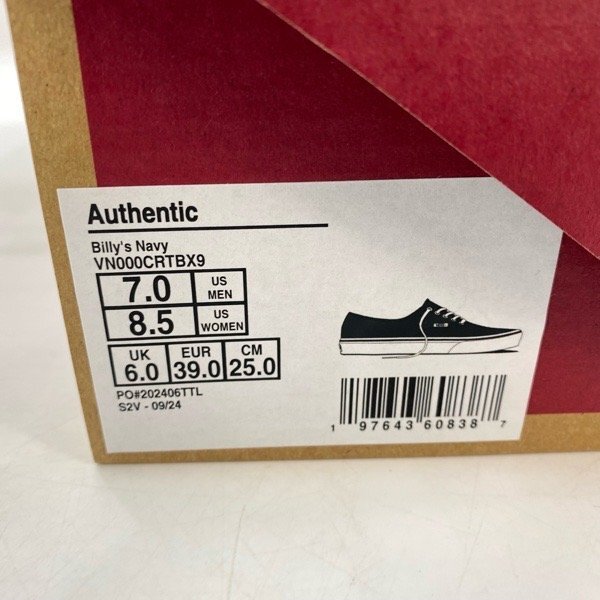 VANS/バンズ BILLY'S EXCLUSIVE AUTHENTIC/ローカットスニーカー/VN000CRTBX9/25 /080 | |||||||||||||||||||||||||