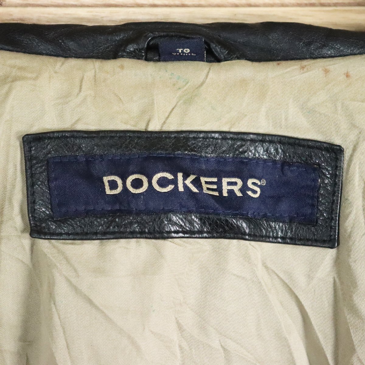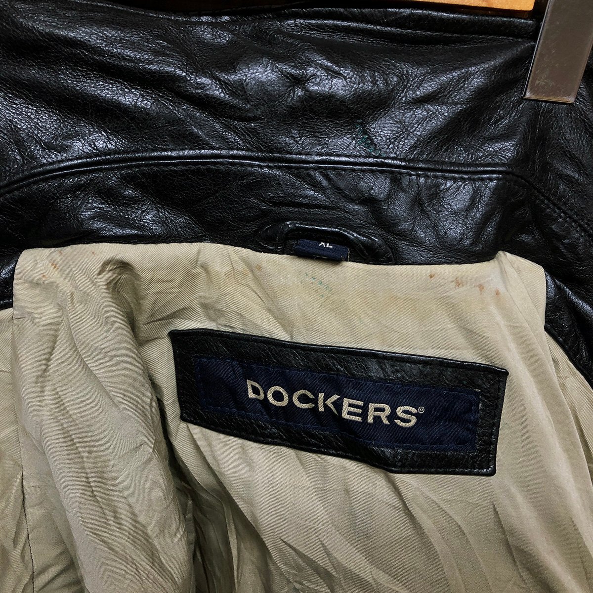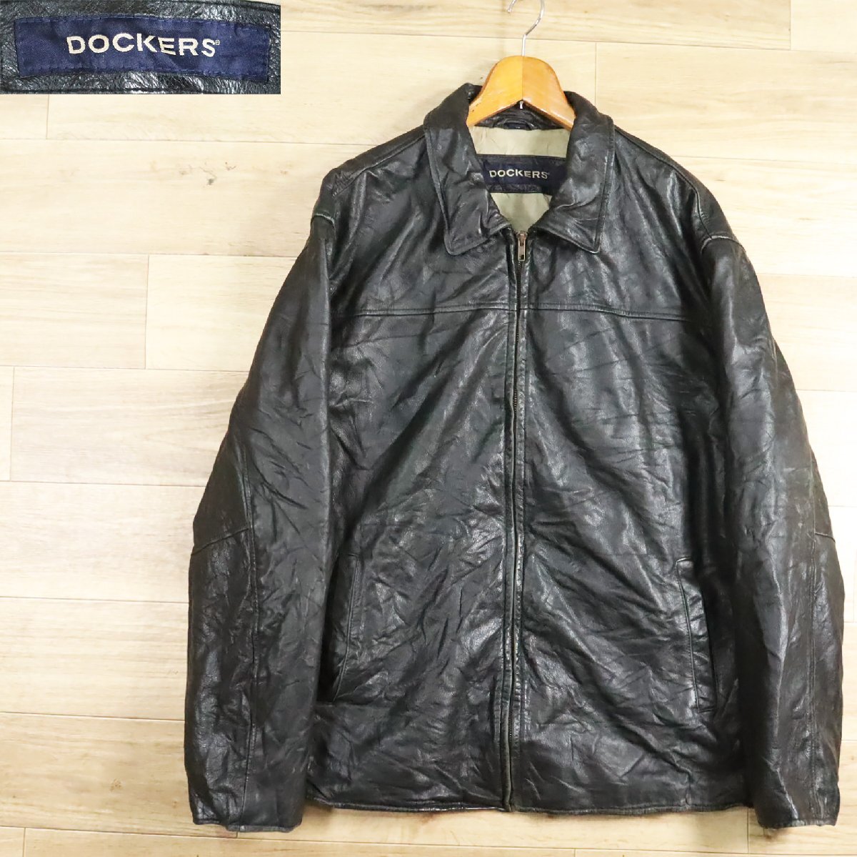 \5K/D7.2-3 DOCKERS ドッカーズ 本革 レザージャケット ライダースジャケット 革ジャン 皮ジャン ブルゾン ブラック XL