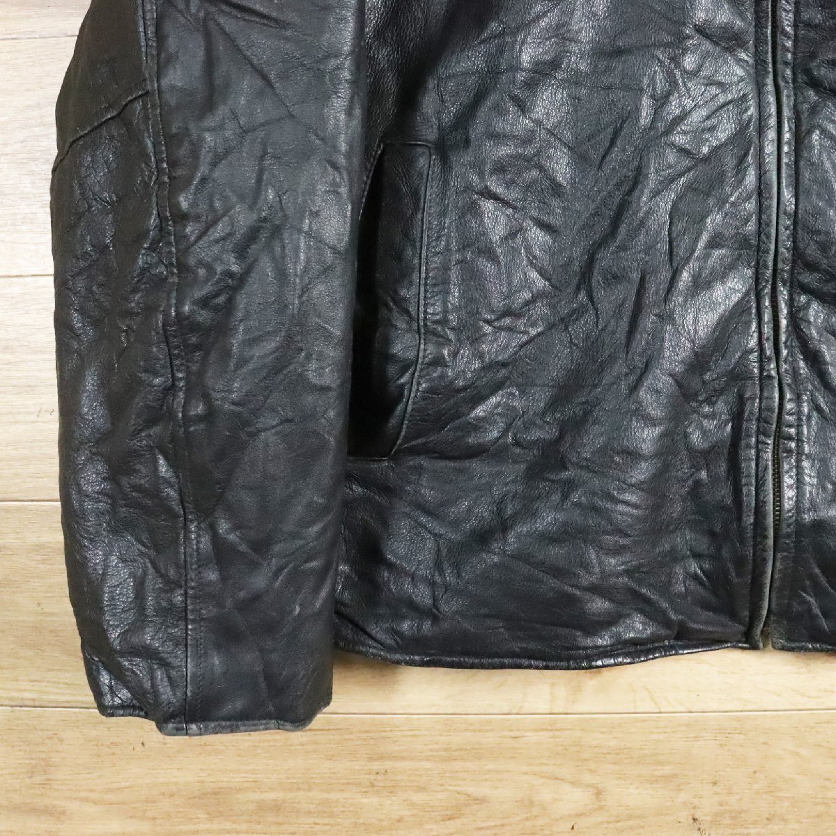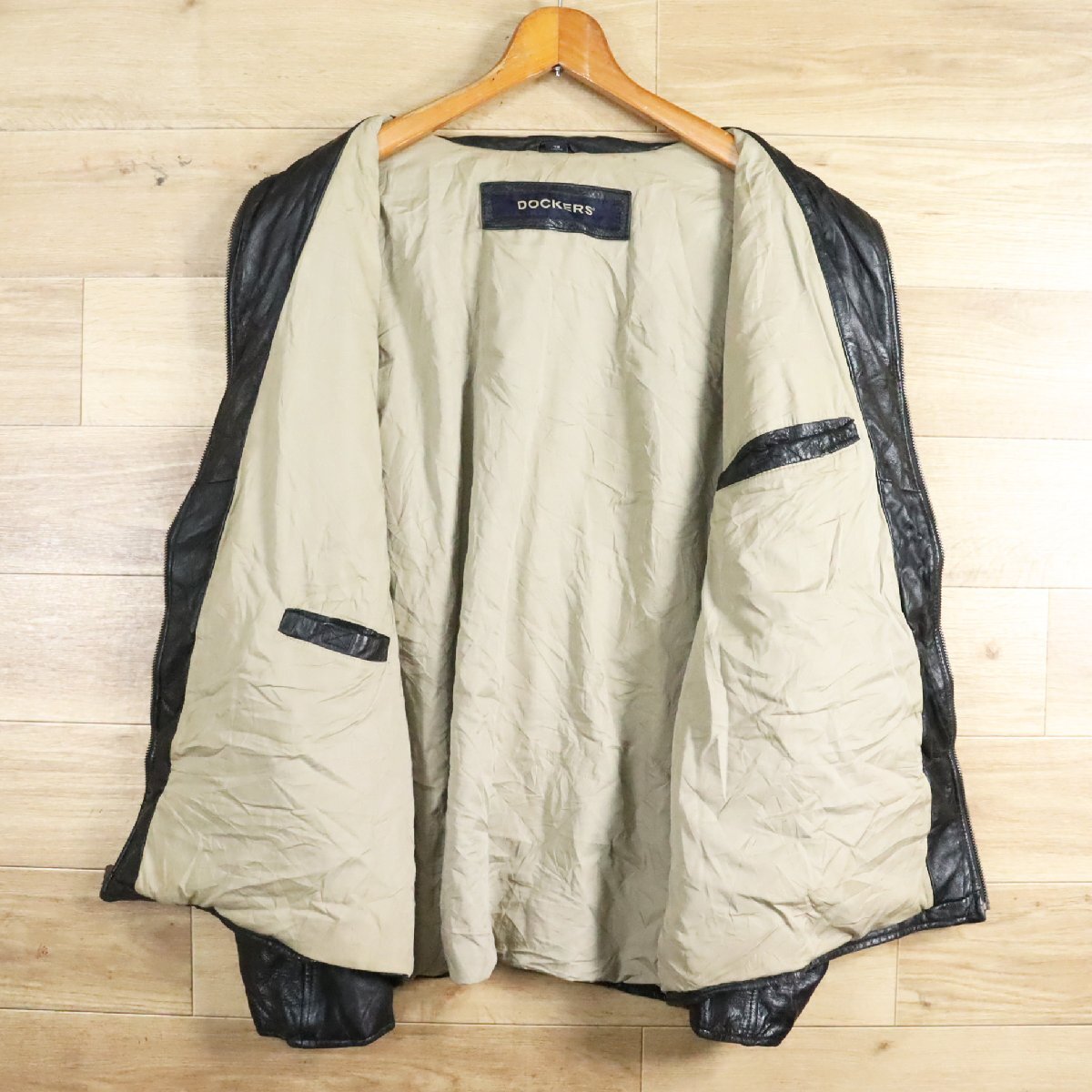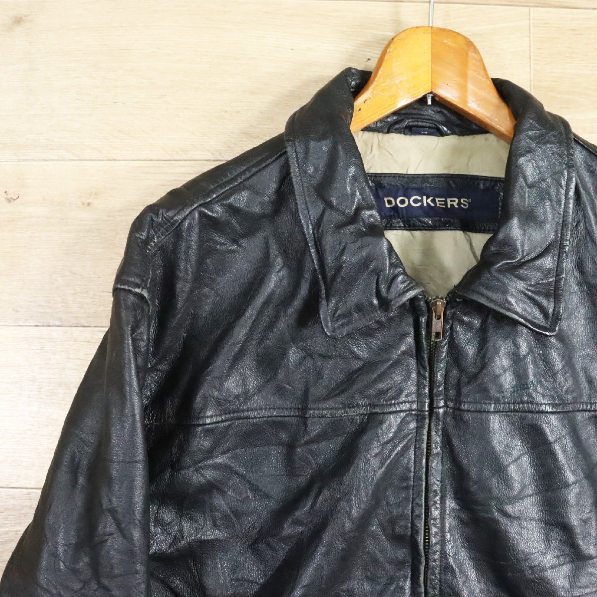 \5K/D7.2-3 DOCKERS ドッカーズ 本革 レザージャケット ライダースジャケット 革ジャン 皮ジャン ブルゾン ブラック XL