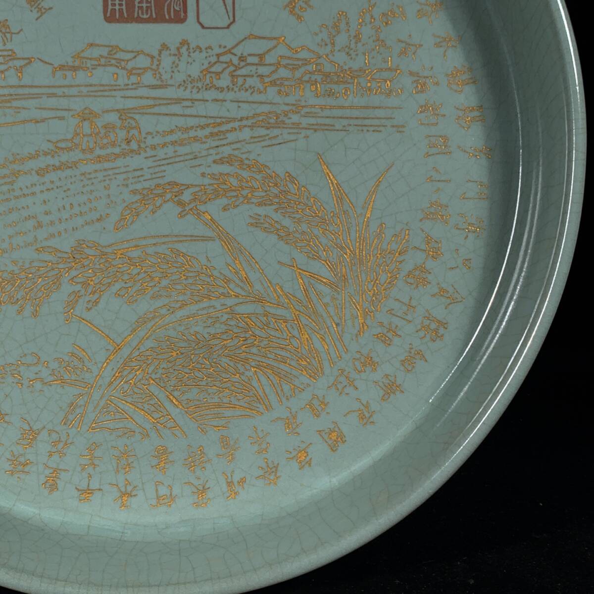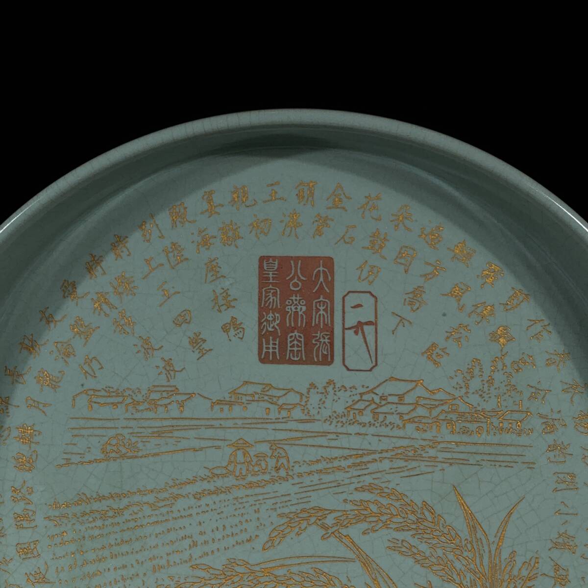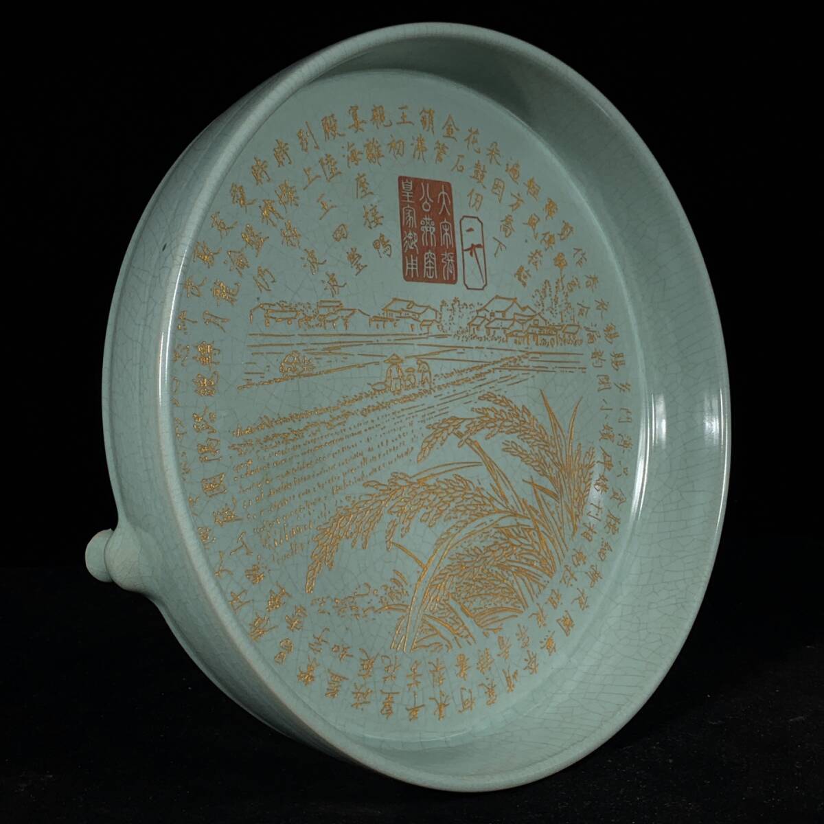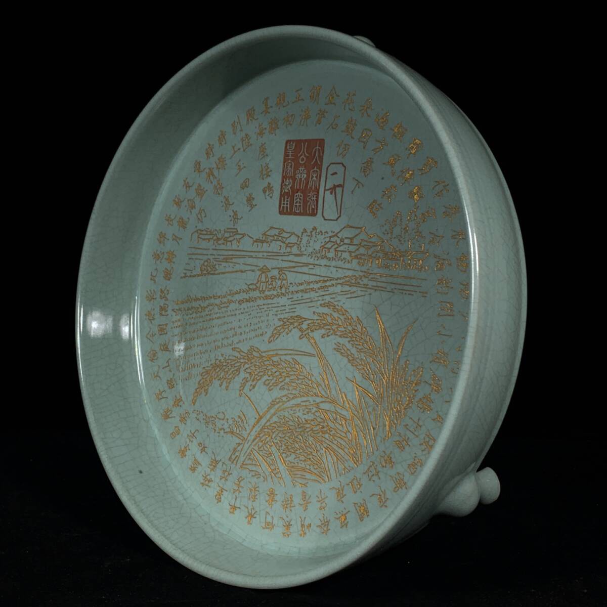 【超珍館蔵】宋 古陶瓷品 汝窯 銘文 秋收圖 三足洗 陶藝 古賞物 古董品 古美術品 時代物 旧家蔵出 稀少珍蔵品